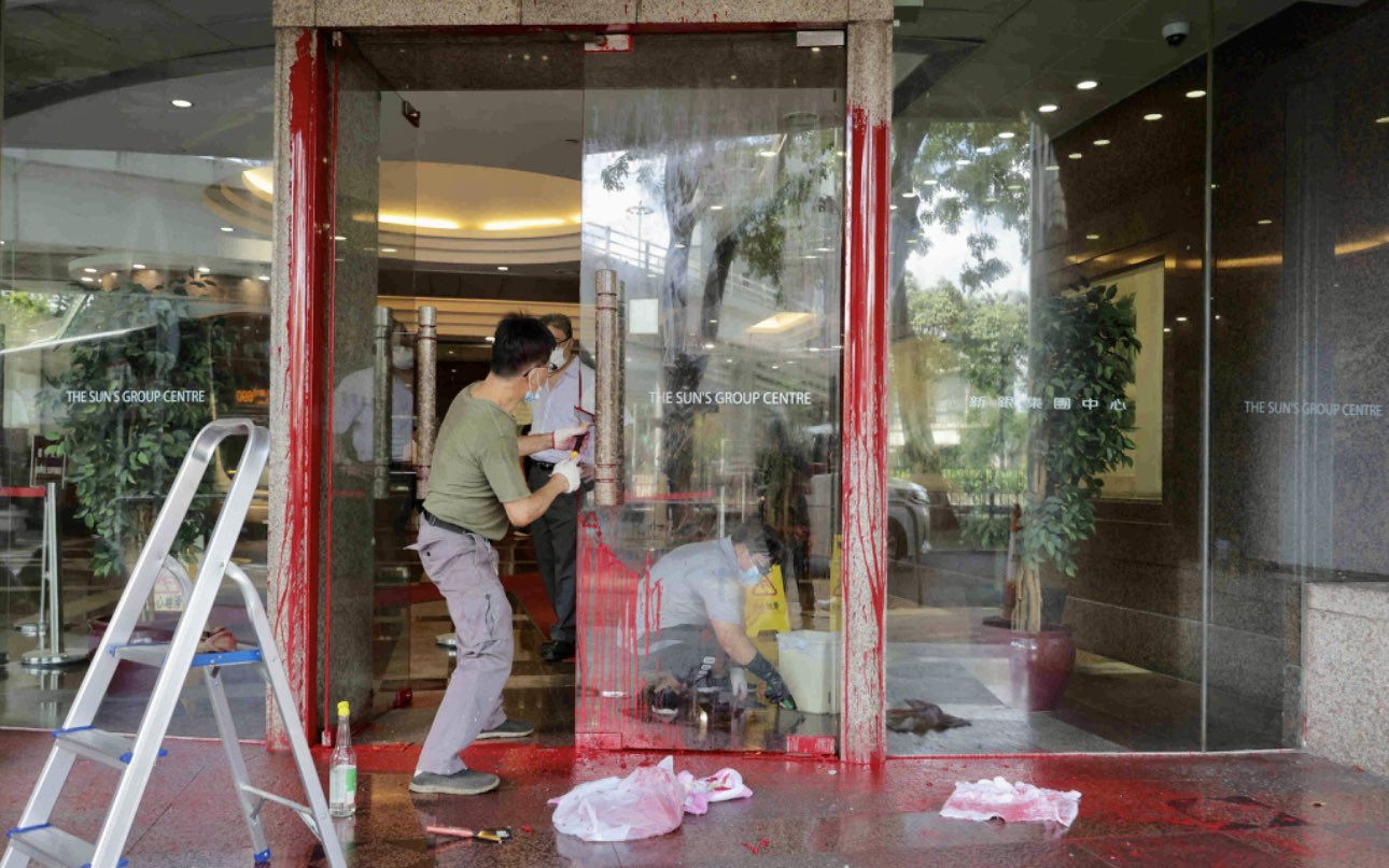 此外,在天水围和湾仔的城市展厅也遭到油漆喷洒
