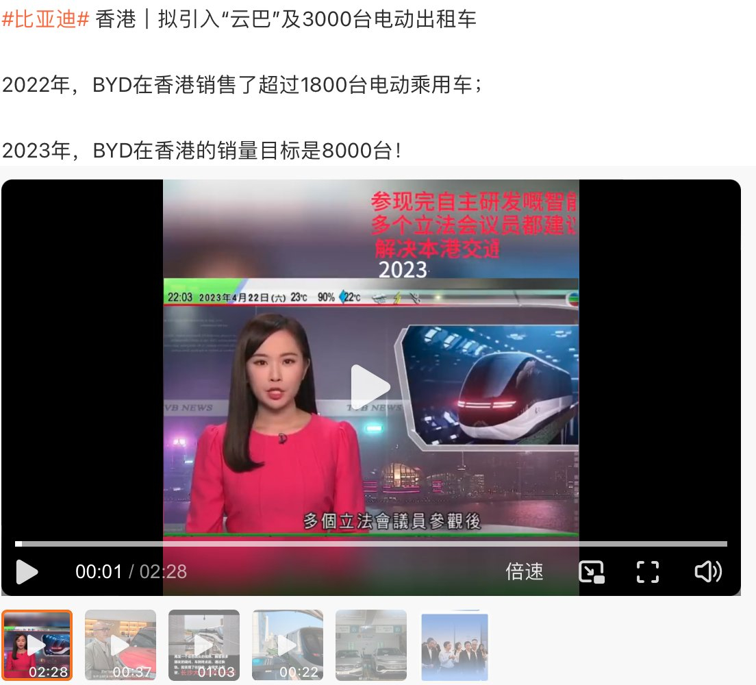 值得一提的是,比亚迪在香港的纯电新能源车型销量排名始终位于前列,和特斯拉交替占据“榜一”,2023年比亚迪在港的销量目标为8000辆。