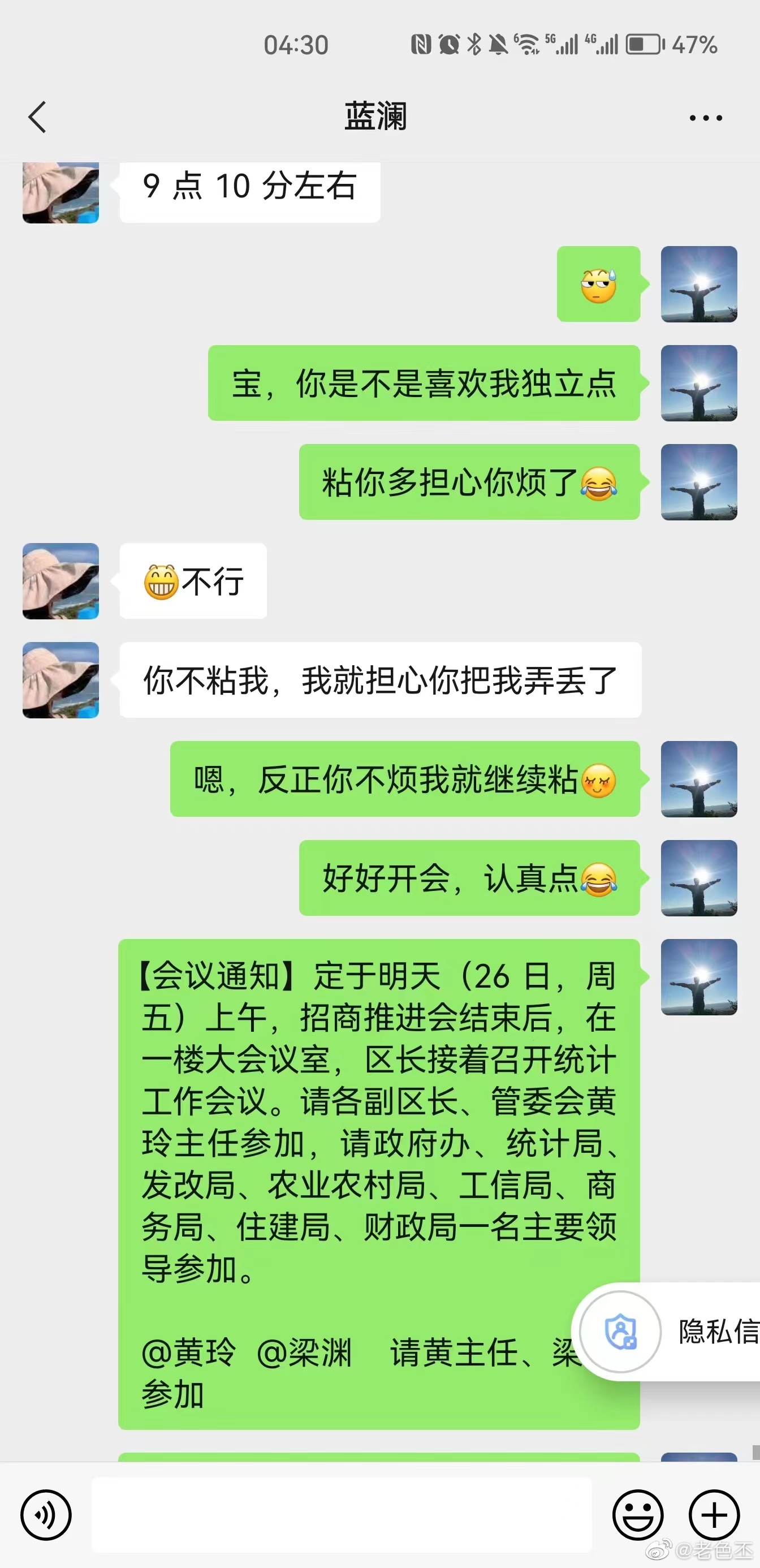 这聊天确实很露骨啊,这要是在现场还不更激烈!这些老干部确实很敬业啊,像我们底层人哪有精力时间搞这个呢……