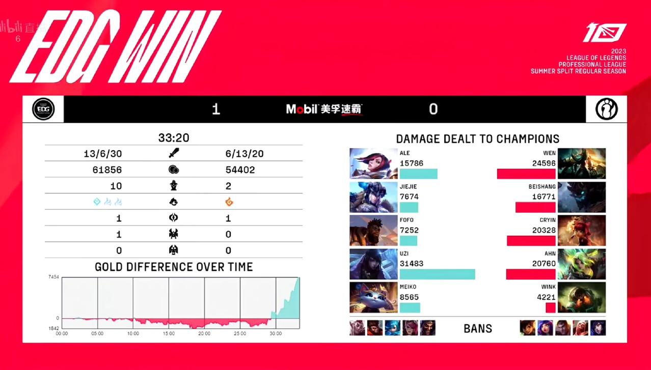 Uzi在EDG的第一场比赛表现还是可以的!只是EDG现在整体表现确实不能算得上好,面对上IG一度比赛还是处于劣势。不过EDG整体在运营决策能力还是好于对手。 已经三连败的EDG确实是不能再在IG这种实力的队伍身上丢分了!而对于uzi来说首秀也是必须要拿下的。加油吧!!!