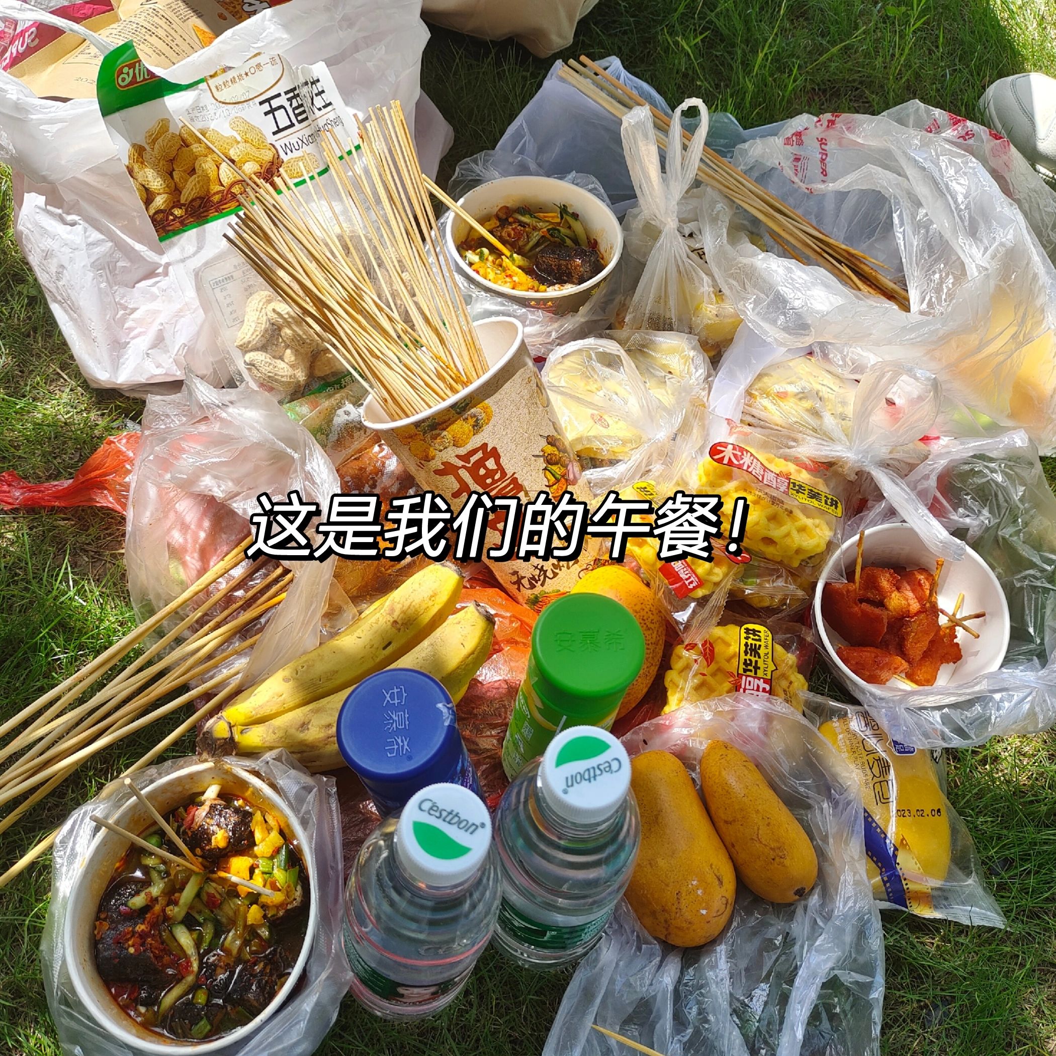 最后,我们买了些烧烤, 点心,零食,五个人盘膝而坐,开始了露营.