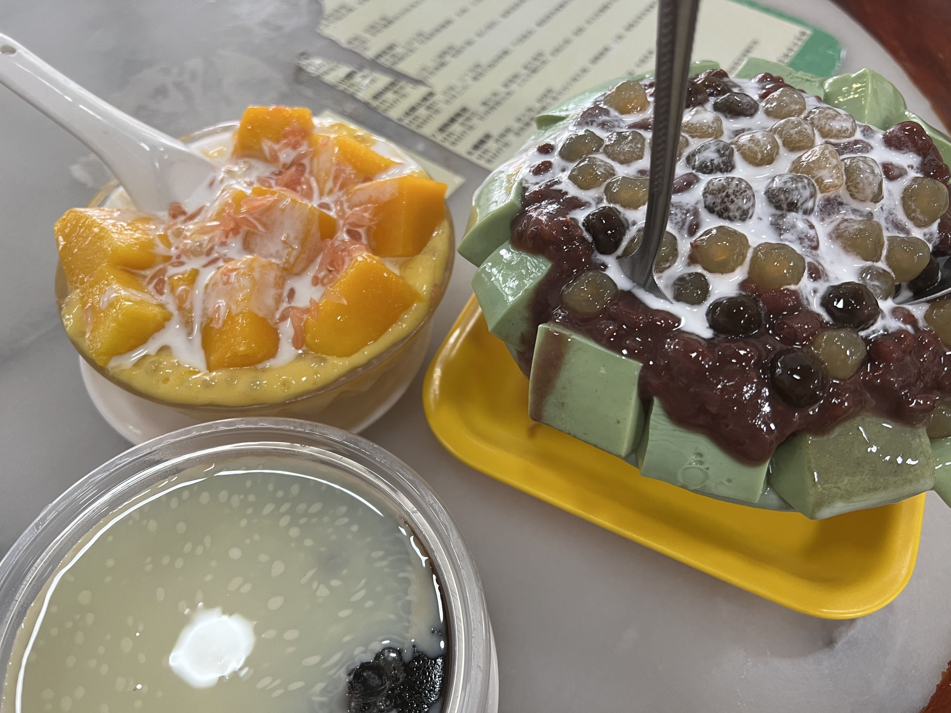 糖水凉茶,来广东高低得整一趟。凉茶浅尝一下吧,真的苦,比打工人的命还苦。糖水,我看谁不吃!!都得吃,广东年轻人的命都是糖水给的,必点👍双皮奶,杨枝甘露,龟苓膏(苦),姜撞奶