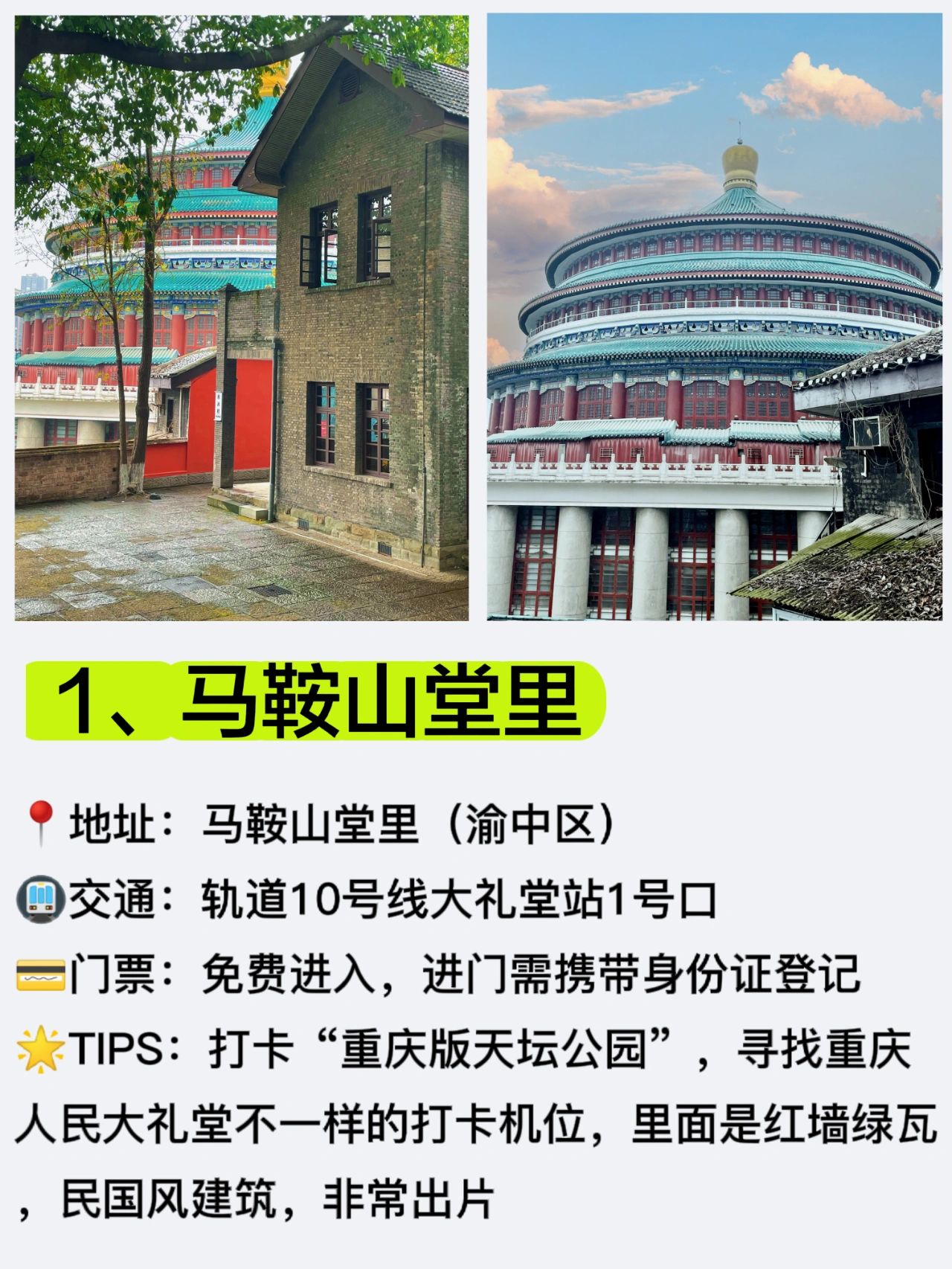 🌟TIPS:打卡“重庆版天坛公园”,寻找大礼堂不一样的打卡机位,里面是红墙绿瓦,民国风建筑
