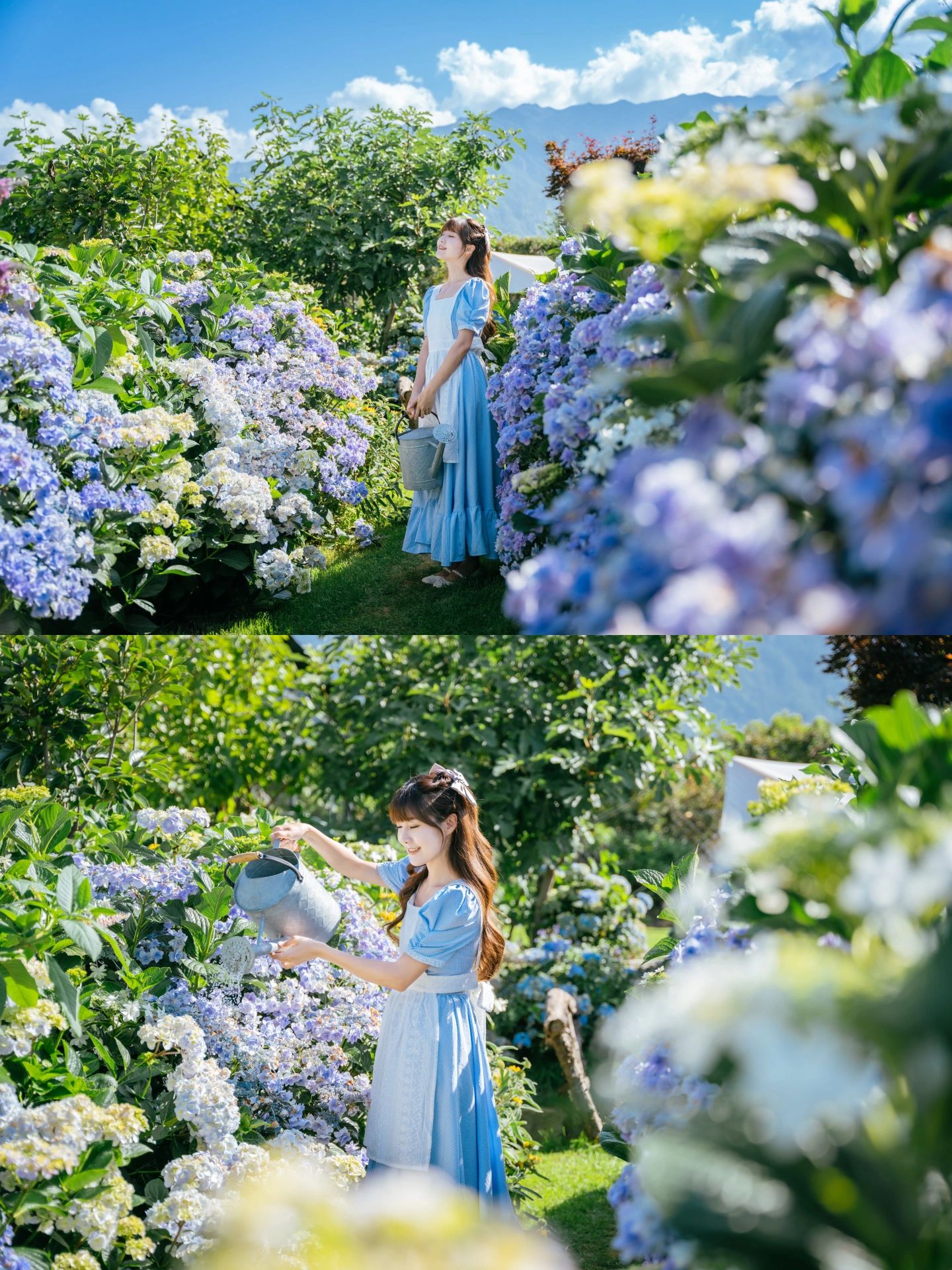 夏天的水花庄园绣球花盛开,五彩斑斓,拍照很出片,除了绣球花,庄园里还有很多网红打卡点。
