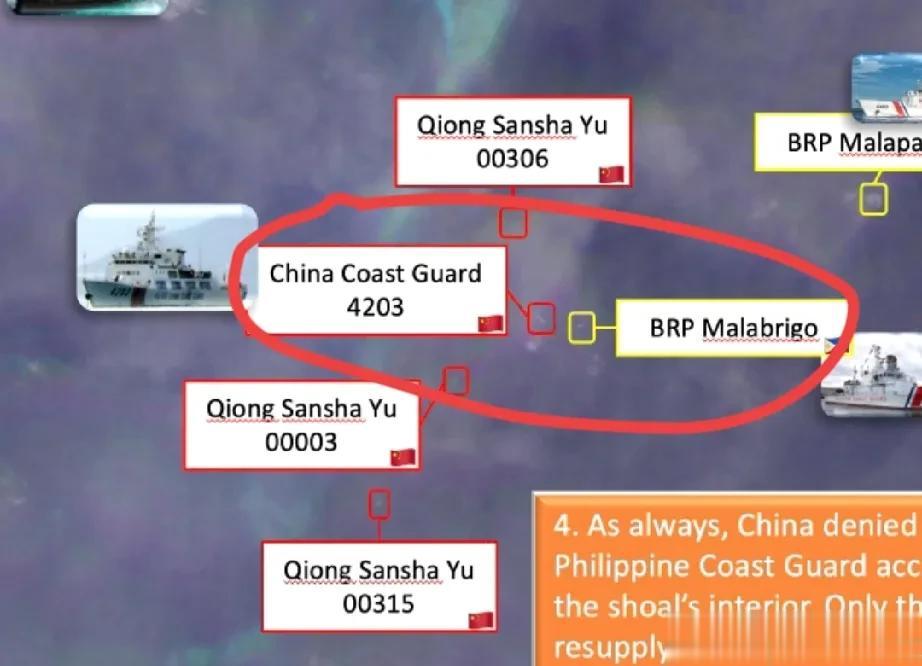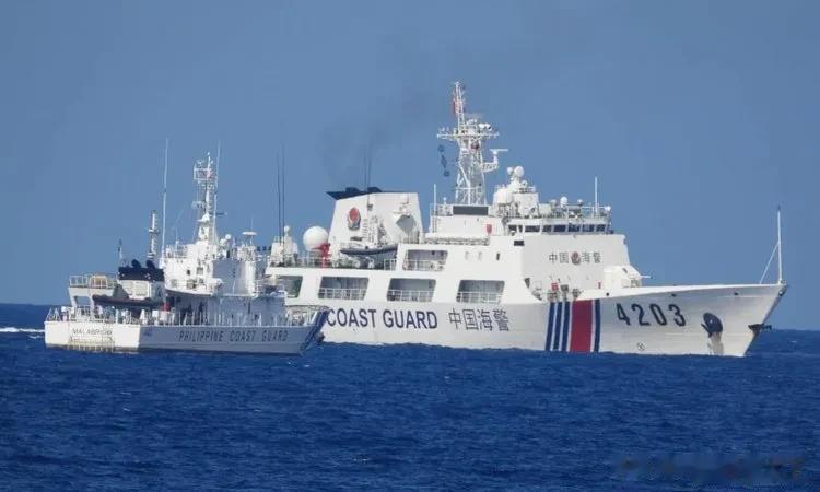 仁爱礁又闹大了!CNN今天上午报道称:菲律宾国会议员“谴责”中国海警船上周在仁爱礁冲撞菲律宾海警船只,并阻拦其进入仁爱礁”! 据报道,发生于6月30日早晨7点53分的这次中国海警船拦截行动,中国出动的船只为海警4203船,菲律宾出动的船只为海警Malabrigo号!从下图2 和图 3可以看出,这两艘舰艇的体型相差巨大! 中国海警船4203号排水量2400吨,装备一门HPJ-26型76毫米舰炮、两艘快速摩托艇、两座高压水炮、直升机起降甲板。而菲律宾海警船Malabrigo号排水量只有700余吨,装备一门20毫米口径的机枪和一门高压水炮,与中国海警船相比,完全不在一个级别! CNN在报道中引用菲海军方面的消息称:在30号当天的冲突现场,中国有两艘海警船,7艘渔船出现在现场,除此以外,中国方面还有一艘长度约90米的战舰在附近“观战”。而中国海警4203船在果断切入菲船只航线后,菲船只被迫紧急减速停车,两船最近距离小于30米! 这起冲突事件的起因是菲律宾海警船试图在当天冲入仁爱礁泻湖,靠近之前搁浅的马德雷山号两栖攻击舰并实施补给,而中国海警船则阻拦其进入仁爱礁。 据CNN报道,多名菲律宾参议员在昨天致电菲律宾总统小马克斯,要求其尽快采取行动。菲参议员里萨·洪蒂佛罗斯在一份声明中指责中国不尊重国际法,鲁莽和不负责任。”另一名参议员埃斯特拉达对媒体表示,中国船只的“多次挑衅”是不可接受的,他呼吁菲律宾有关机构寻求一切可用的法律和外交途径来解决这个问题,并寻求适当的补救措施。同时,利用外交渠道表达强烈谴责,并要求中国立即停止这些“侵略行动”。