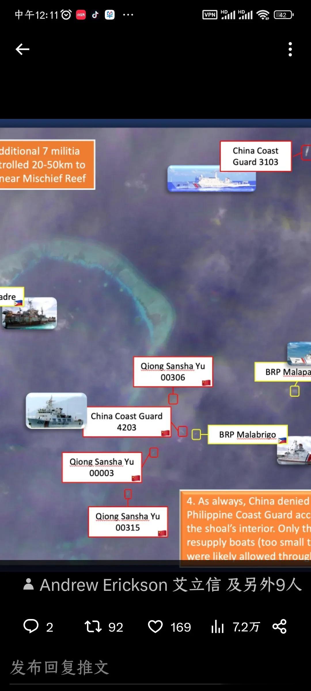 中国海警船在仁爱礁“危险阻挠”菲巡逻舰?中国外交部今天正式回应此事称:中国海警船在仁爱礁海域依法开展执法活动,维护中国领土主权和海上秩序,有关操作专业克制! 针对菲律宾政府和有关媒体,昨天大肆炒作有关中国海警船在仁爱礁海域拦截菲律宾海警船的报道,中国外交部今天给出了正式回应! 在今天举行的外交部例行记者会上,有记者提问称,菲律宾海洋警卫队称,两艘菲律宾巡逻舰在南海海域遭中国海警船“尾随骚扰阻挠”,举动非常危险,请问中方对此有何评论? 对此,中国外交部发言人汪文斌表示,仁爱礁是中国南沙群岛的一部分,6月30日菲律宾海警船未经中方允许,擅自闯入仁爱礁附近海域,中国海警船依法开展执法活动,维护中国领土主权和海上秩序,有关操作专业克制! 事实上,我们注意到,发生在6月30日的这场中菲海警船仁爱礁对抗中,两国船只并未发生直接接触,对于菲海警船试图采取“突然偷袭式”的冲入仁爱礁的举动,中国海警船理所当然了予以了坚决果断的拦截,如果菲律宾方面非要对此抱怨的话,那不如抱怨自己船小跑的慢! 事实上,本着人道主义的原则,在对抗中,中国实际上最后放行了菲律宾方面以摩托艇方式为仁爱礁上搁浅的马德雷山号破船进行补给的行为。如果中国方面想要拦截这些摩托艇,难道就没有办法吗?别忘了,中国海警船上不仅装备了76毫米速射炮,还有多种近战速射武器! 所以,菲律宾方面的这种大肆渲染,实际上更多的是想在国际上制造一种苦情色彩,试图将南海问题进一步国际化,对此我们应当有清醒认识!