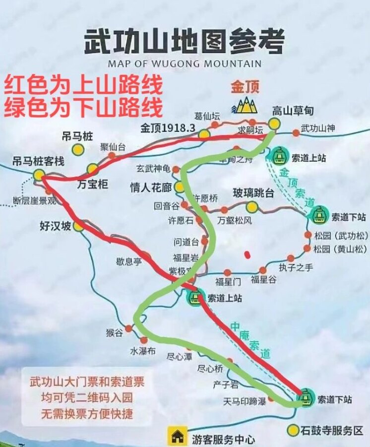 🔴门票网上买:成人票70💰 学生票50💰 中庵索道上行65💰 下行50💰