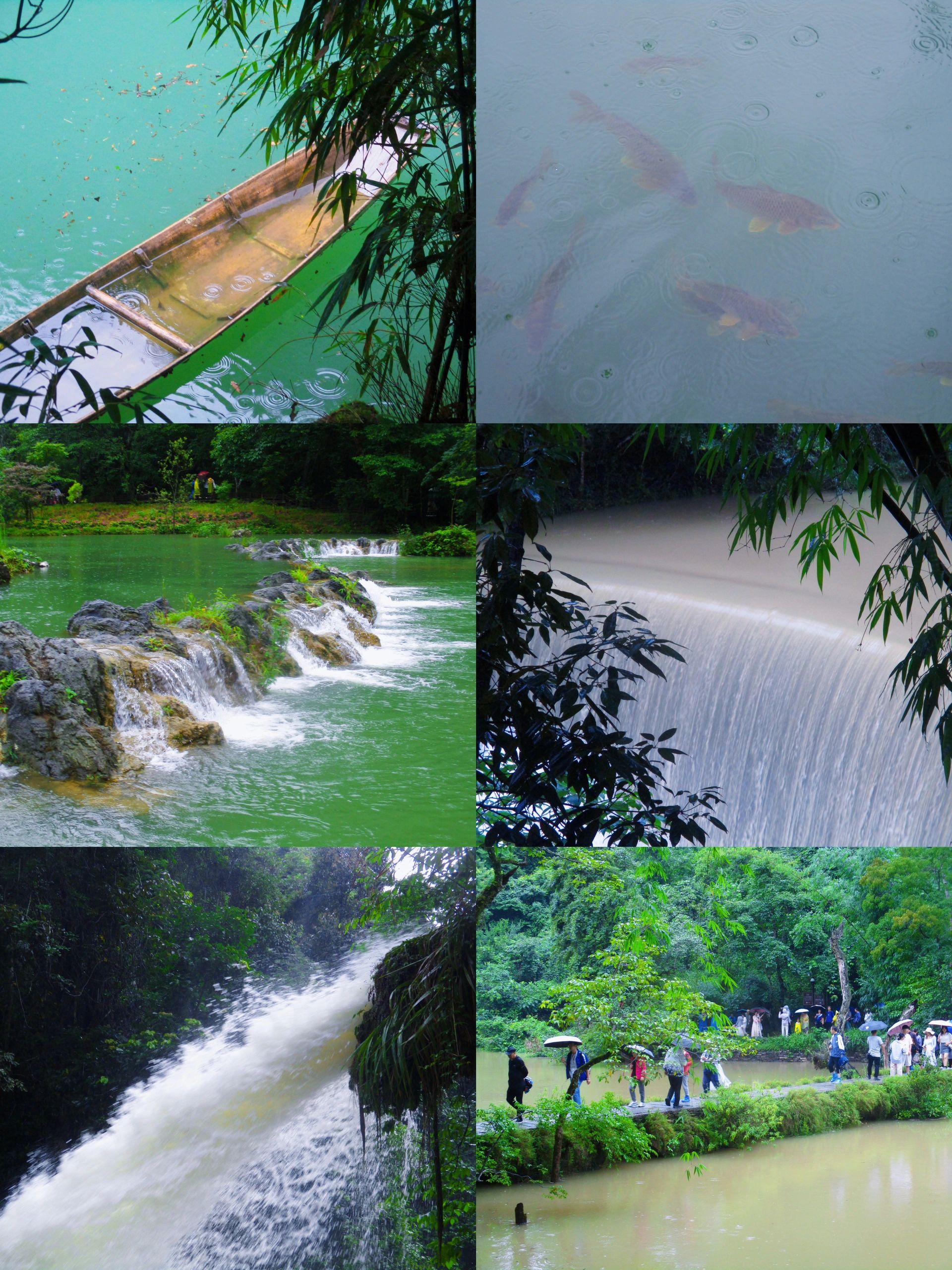 进入景区后去了卧龙潭瀑布、翠谷瀑布、石上森林(本来要去水上森林的,由于这几天雨季,水位上涨,就封了),最后来到小七孔桥。