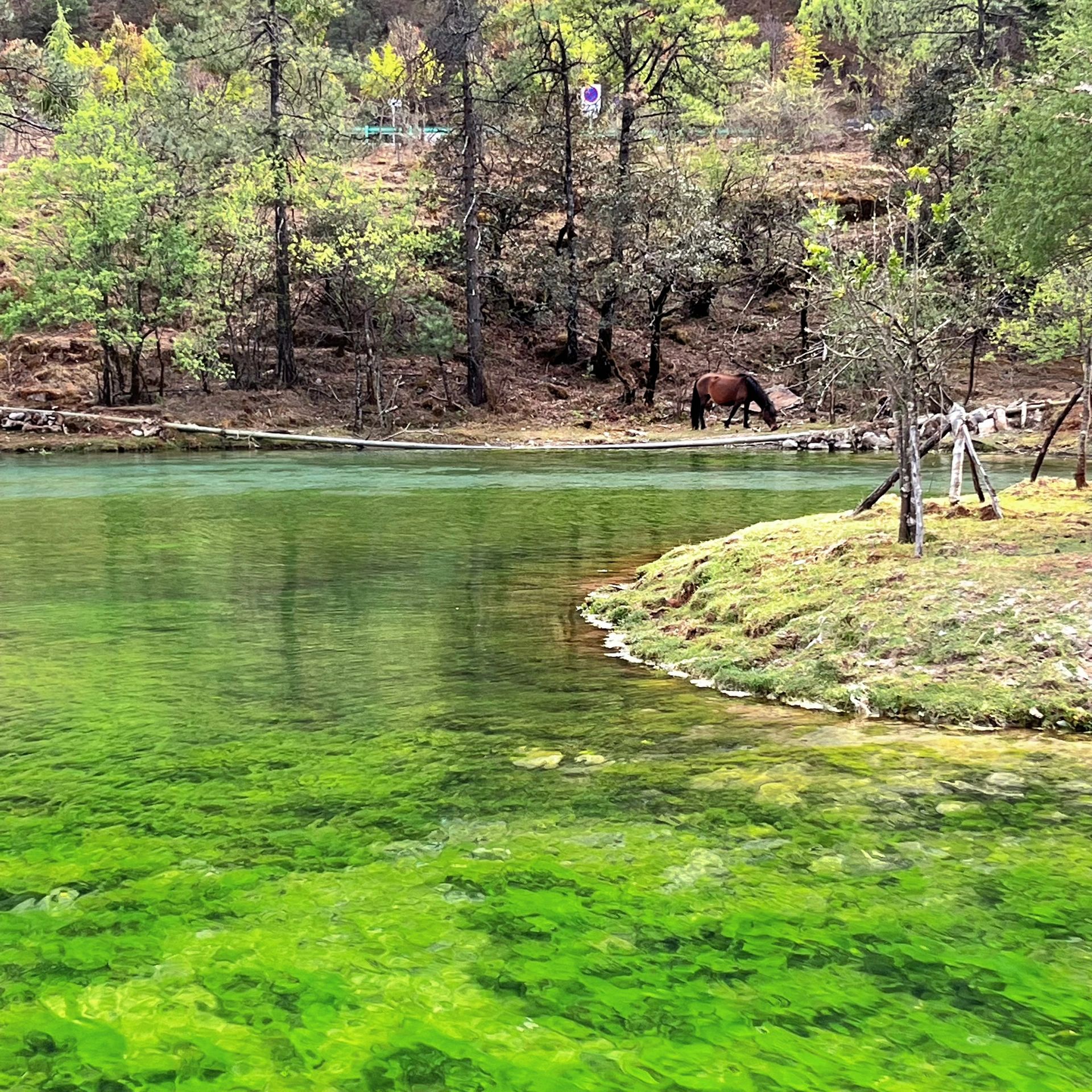 第三站蓝月谷,下了云杉坪索道,直接上大巴去水月阁,直达到蓝月谷的,蓝月谷天气好的话水很蓝,我那天去天阴但是还是很蓝很绿