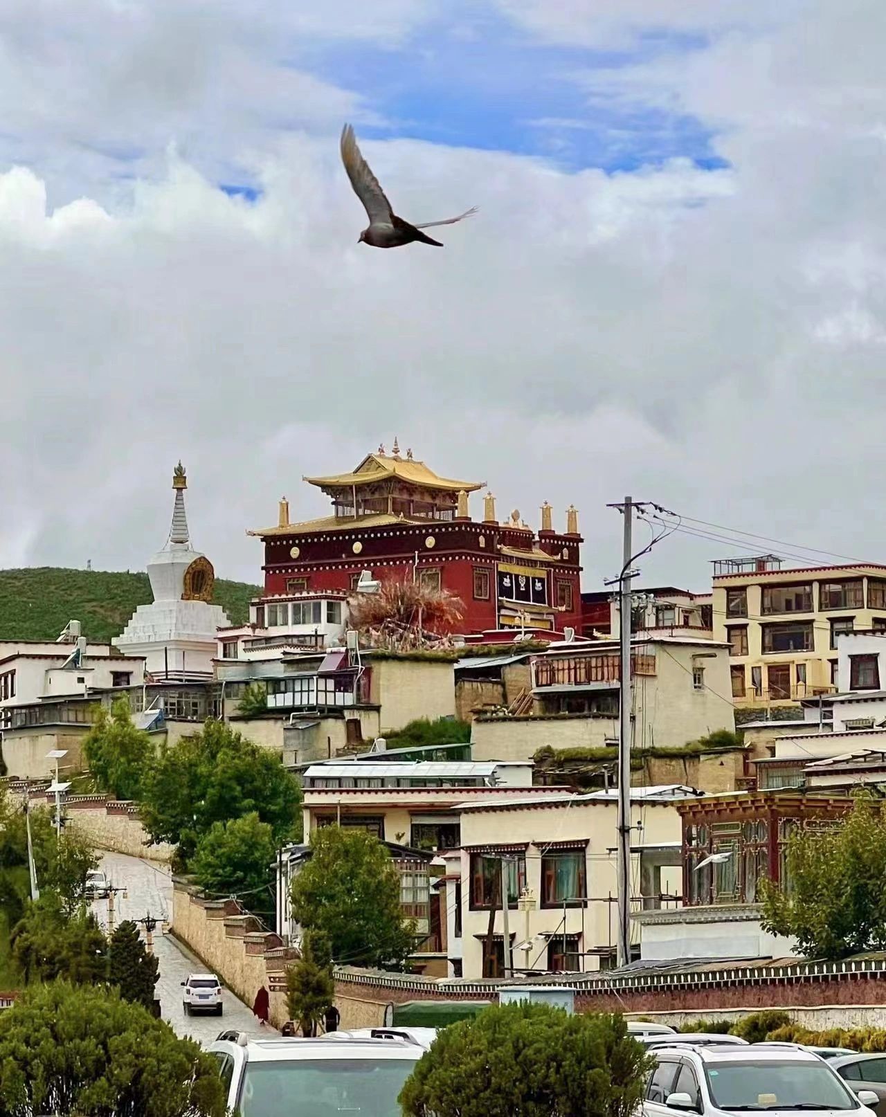 接着,我们去了松赞林寺,景区入口需要出示身份证购票,票价为55元,另外还需支付20元的景区来回大巴费用。在松赞林寺游玩了一个小时左右,虽然最近有些地区正在翻修,拍照的机会不多,而且遇上阴天,照片效果不太理想。