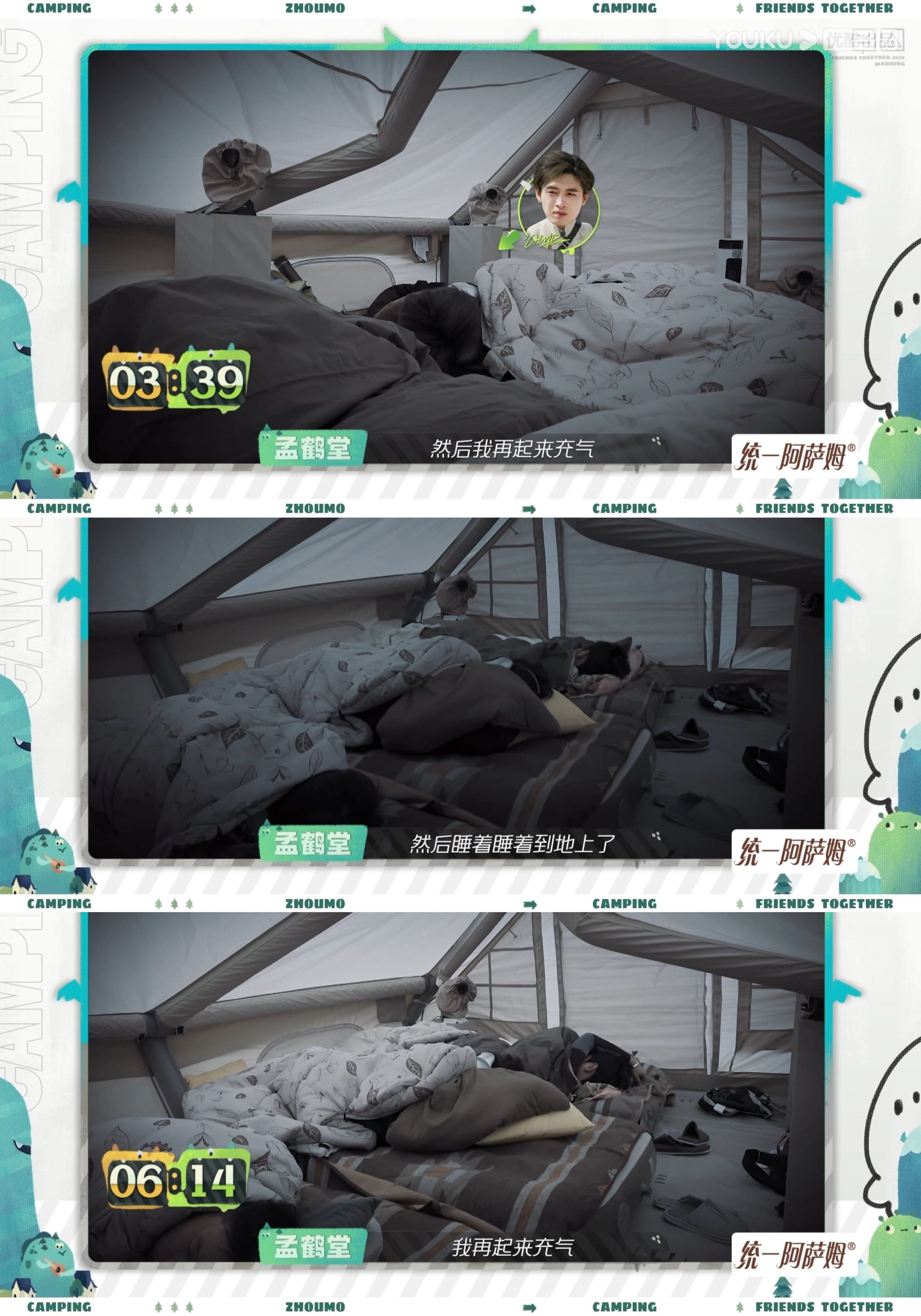 #孟鹤堂露营一晚上冻醒八回# 都被冷醒了这么多次也太不容易了吧!《是好朋友的周末》这一次露营应该也是让他们印象深刻了!床垫漏气,真的好不容易啊!#孟鹤堂梦中给床充气#