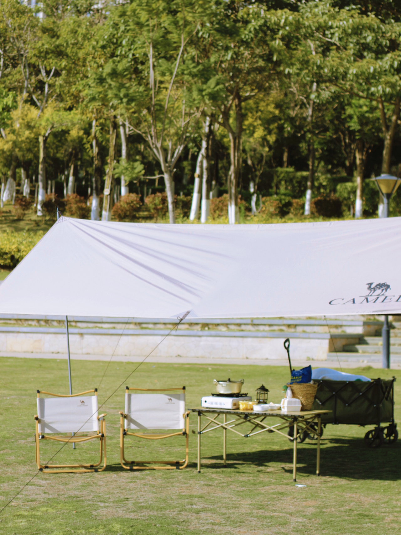 作为露营新人,庆幸初次体验整体很成功。这一套简直为小白量身定制(含黑胶天幕、铝合金蛋卷桌、折叠椅、卡式炉、气罐、氛围灯)基本上就是露营的基础装备,解放双手。1、黑胶天幕:方形天幕是基础款,轻松好搭建,新手20分钟内搞定,黑胶遮阳效果好;2、铝合金蛋卷桌、折叠椅:便携收纳,其次便于清洁。我们在上面煮了火锅,收拾的时候轻轻一擦就干净了;3、卡式炉;4、瓶气罐,足够使用好几次的户外。冬天户外风大,但炉子的防风性很给力;5、氛围灯:根据自己露营时间需要可以安装。晚上亮灯会比较有氛围,也可以充当照明。