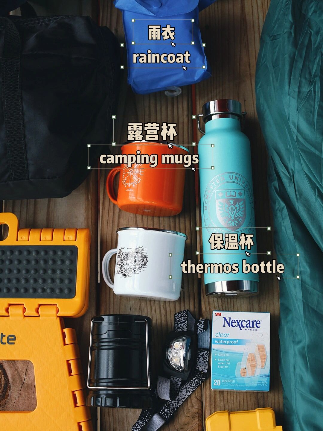 保温杯:寒冷的时喝上一杯热水是很必要的,并且野外烧火不容易,可以用保温杯储存热水