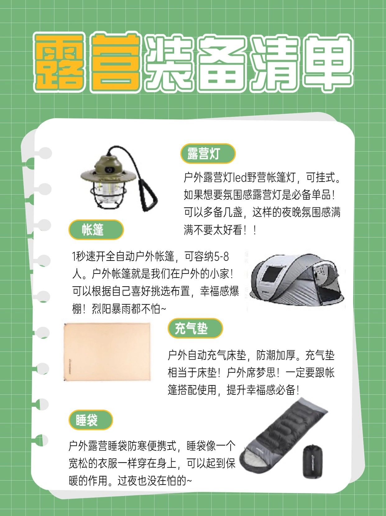 露营正时,新手想入坑,应该准备些什么呢今天EchoSmile给大家准备了一波露营必备清单指南,赶紧来抄作业,get一波!