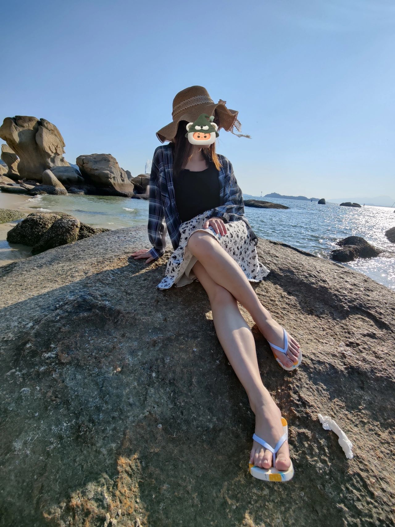一大片白沙滩,沙子很细,海水清澈,石头很多,随便抓拍都可出片,站坐随便凹造型
