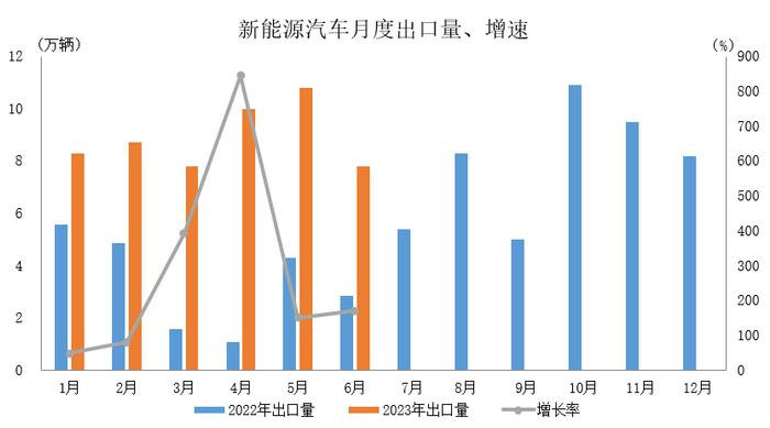 新能源方面,6月,新能源汽车出口7.8万辆,环比下降28.4%,同比增长1.7倍。2023年1-6月,新能源汽车出口53.4万辆,同比增长1.6倍。