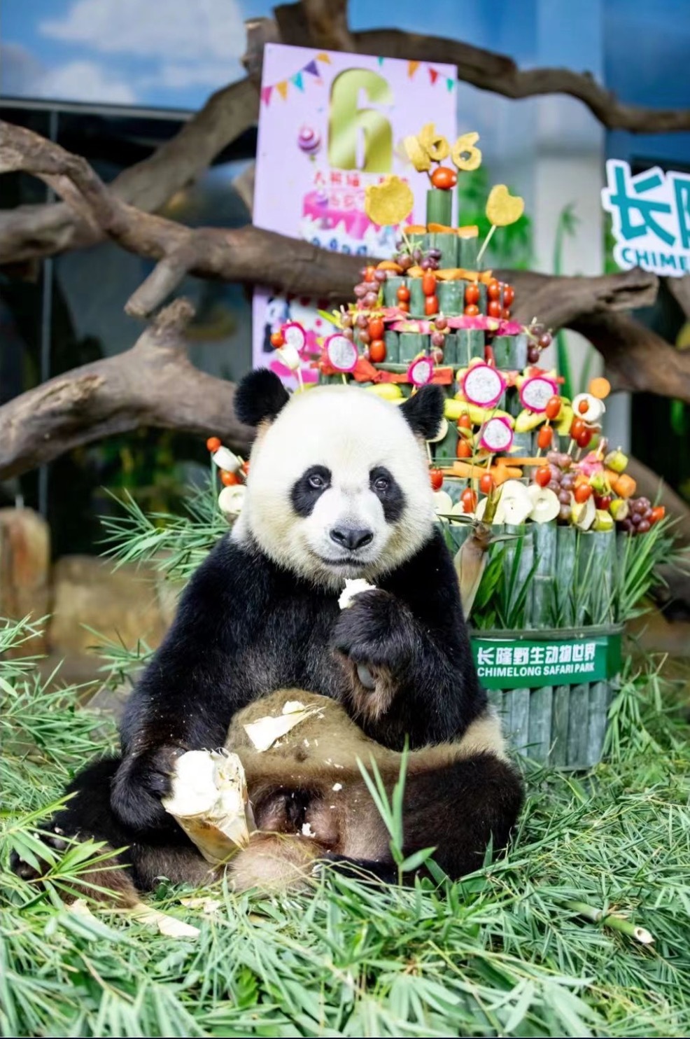 #全球齐贺熊猫三胞胎生日# 在长隆生活的熊猫宝宝真的好幸福啊,看看“萌帅酷”的生日会别太气派啦,不仅有比熊猫还高的竹子蛋糕,日常还有各种造型的纯手工下午茶!饲养员真的好用心!!三胞胎聚在一块玩得不亦乐乎,不愧是国宝,连待遇也是国宝级别的~据说“萌帅酷”7月29日9周岁生日会当天也会有下午茶,好期待!