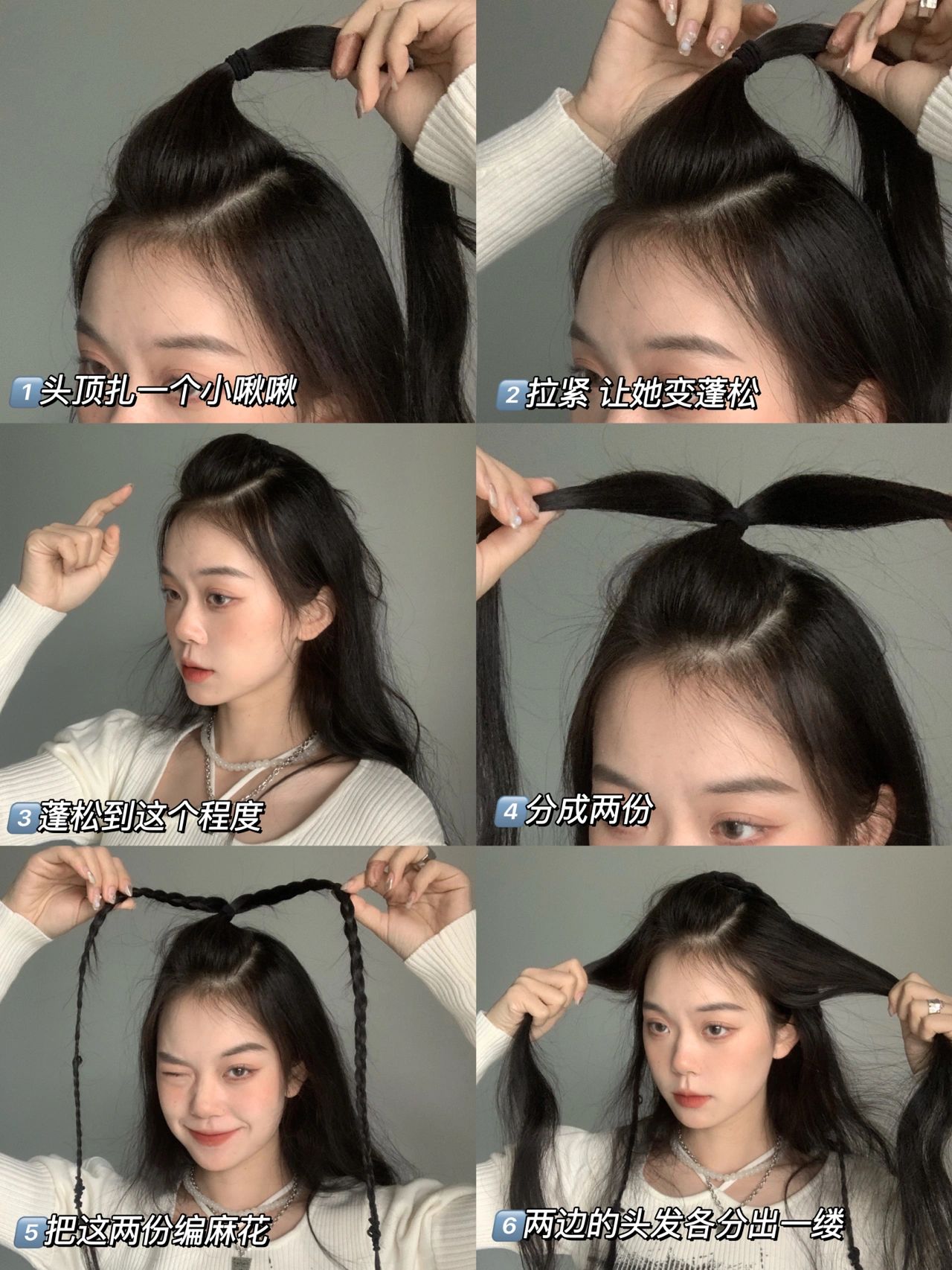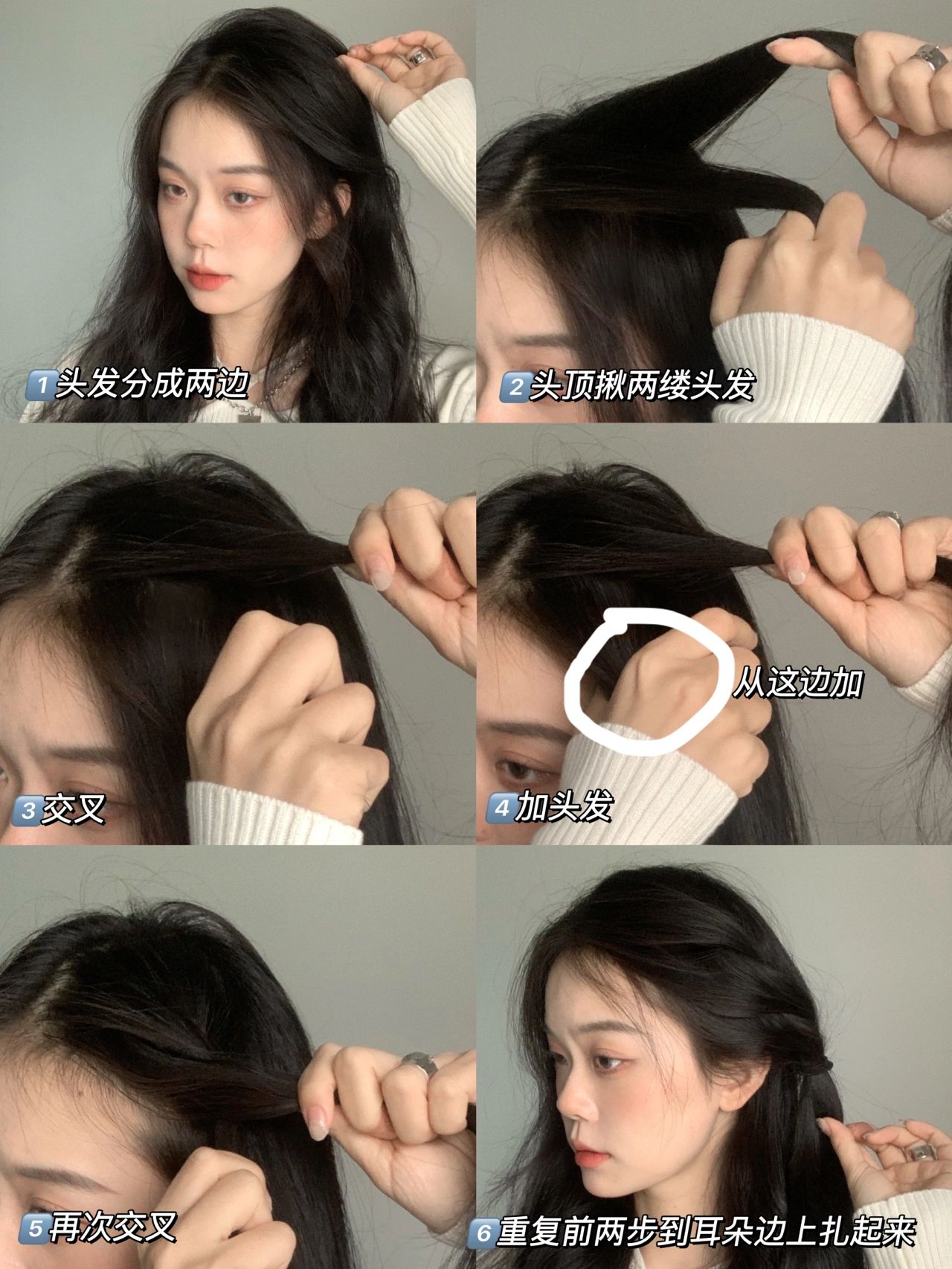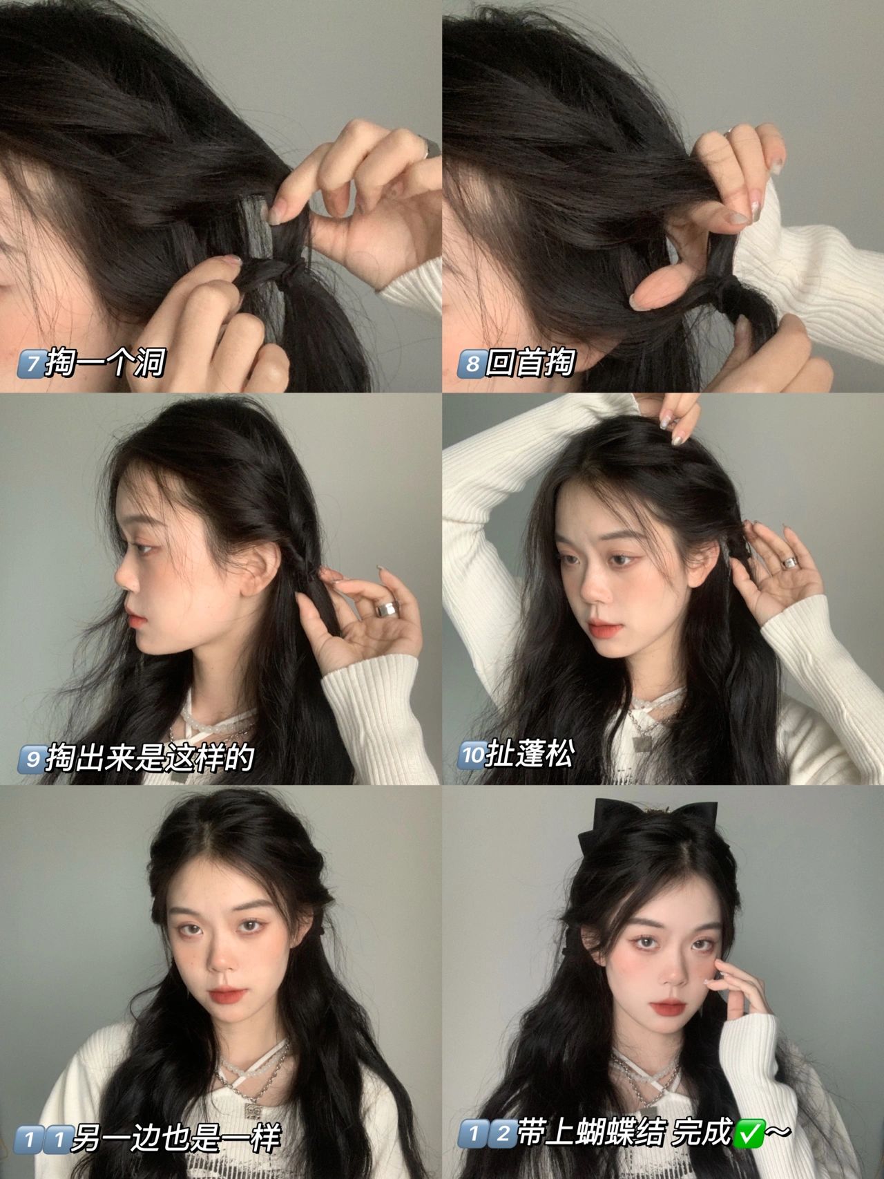 公主风蝴蝶结编发教程,贼好上手的发型教程!
