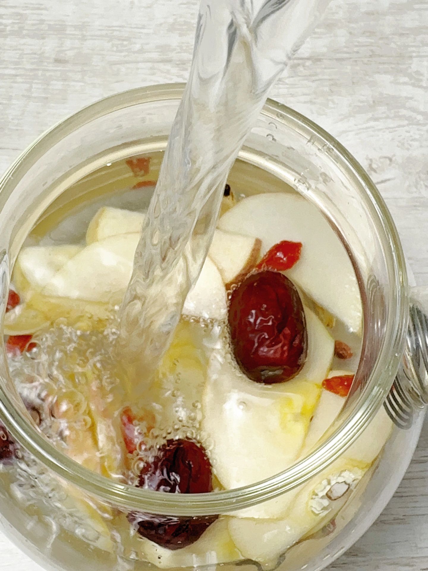 操作:全部食材倒入养生壶,加入400ml清水调至花茶模式即可