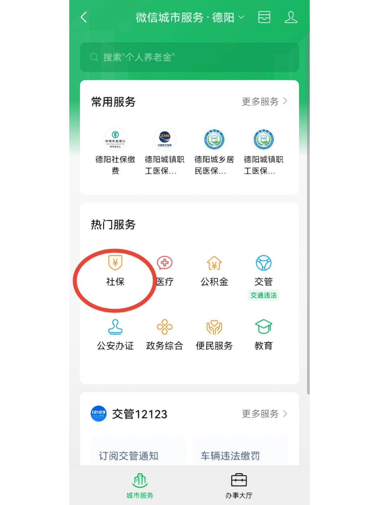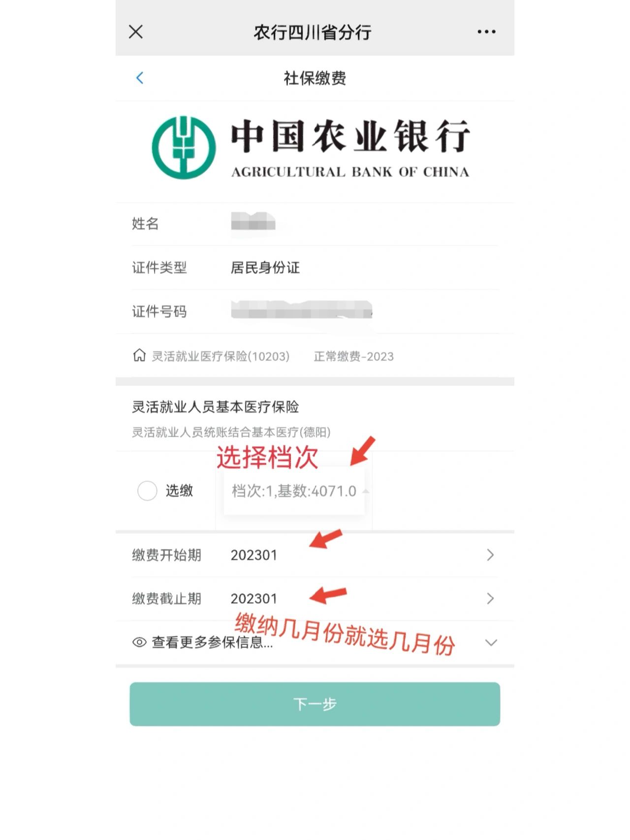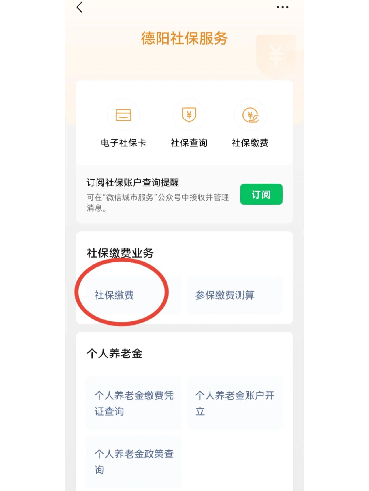 点击微信我的 - 服务-城市服务-社保-社保缴费-输入证件号码-选择你需要缴纳的险种-选择档次和月份-点击选缴支付就可以了