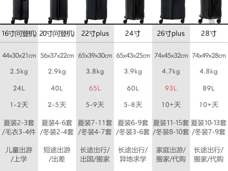 常见旅行箱尺寸: