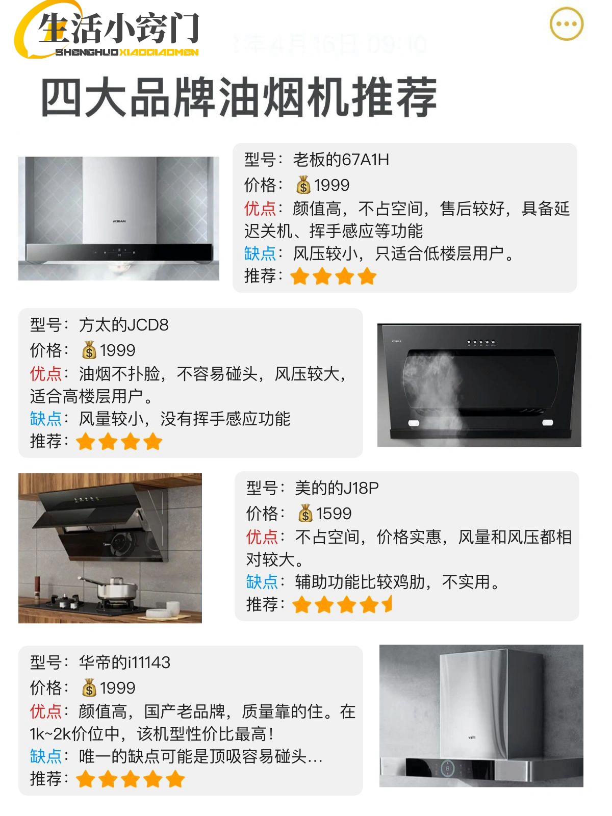 预算1k~2k,买什么品牌?什么型号的油烟机?