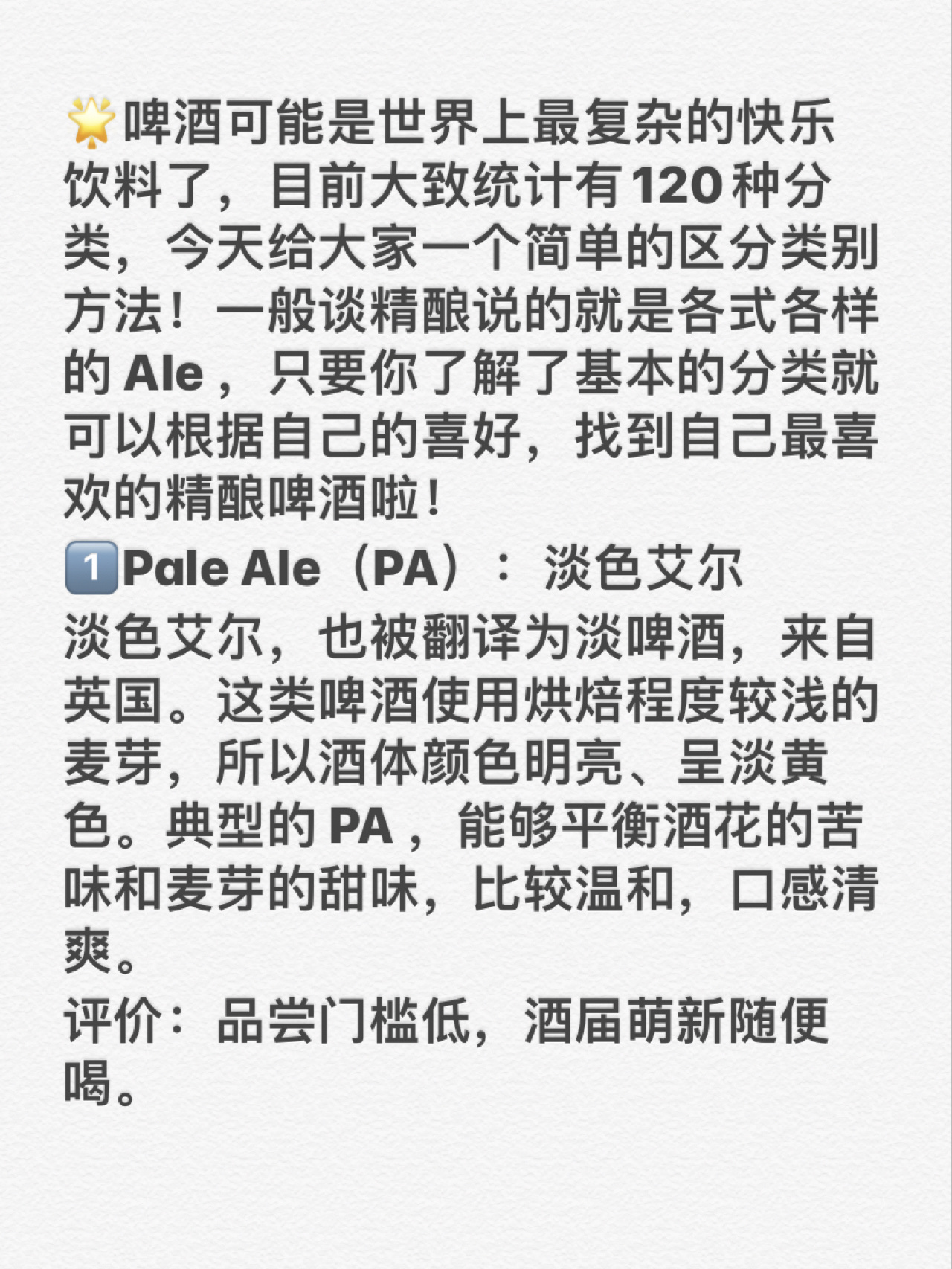 Pale Ale(PA):淡色艾尔
