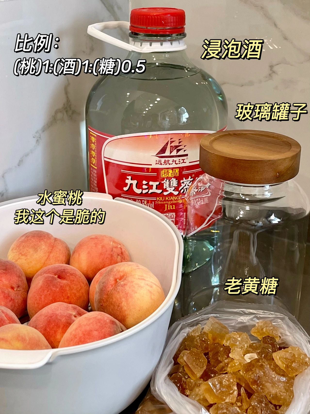 准备:水蜜桃、九江双蒸浸泡酒和老黄糖