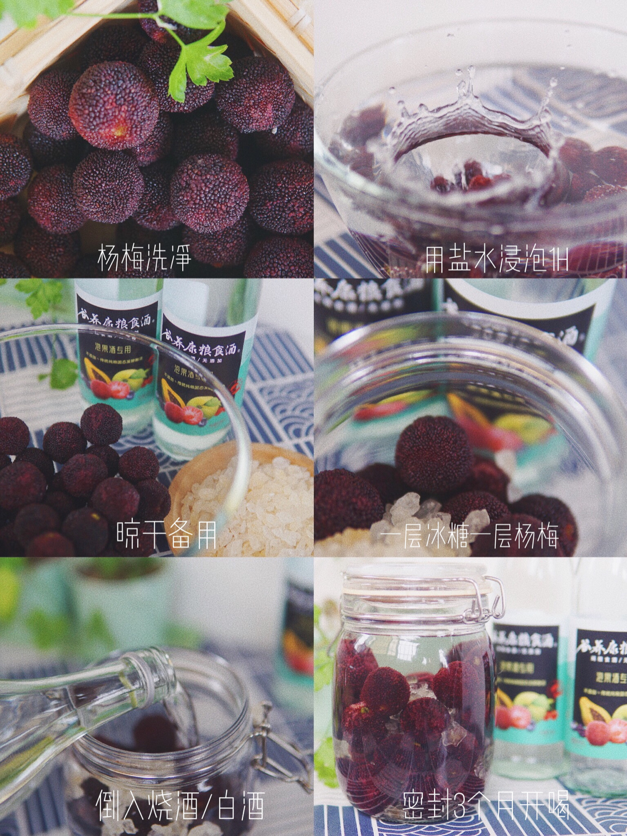 罐子都是要提前烫煮过晾干,酒量不行的选17度多的真露,度数低好入口;想要保存时间久一点的就用42度以上的白酒,我用的是谷养康无添加泡果酒专用酒。