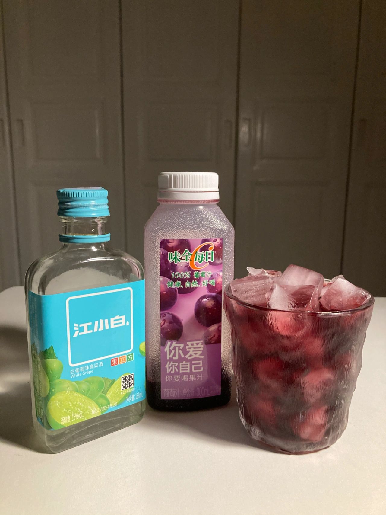 江小白混合口味➕美汁源葡萄 1:2的比例!!加上冰块!简直回味无穷啊!!
