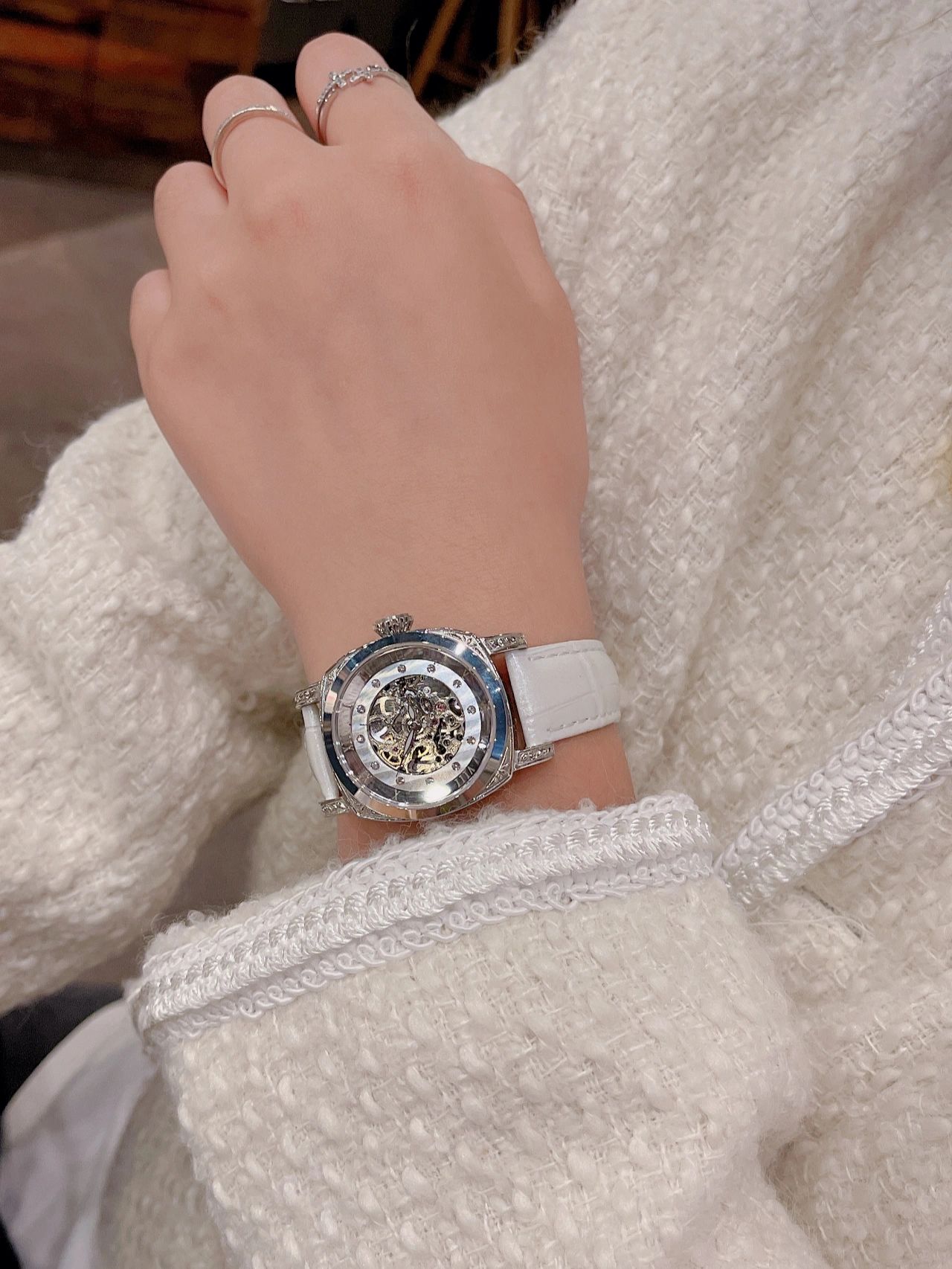 入手的是他们家白钻款,戴起来显得人知性优雅