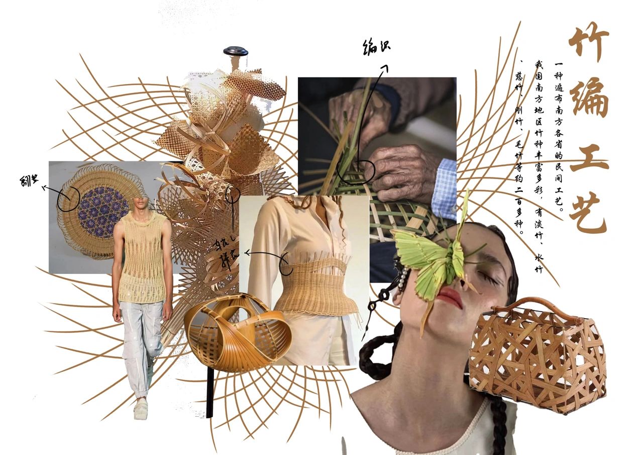这个工艺也开始逐步进入时尚界啦,看到很多大神用竹编做的服装都非常漂亮。这里介绍几种编织工艺,编织,即用竹丝、 篾片以挑和压的方法构成经纬交织。车花,将竹节车成一定形状和装饰。拼花,利用竹的表面或断面,拼成花型或器皿。穿珠,是将竹节制成小段进行穿结。翻簧,利用竹簧加工制成各种器皿的方法。