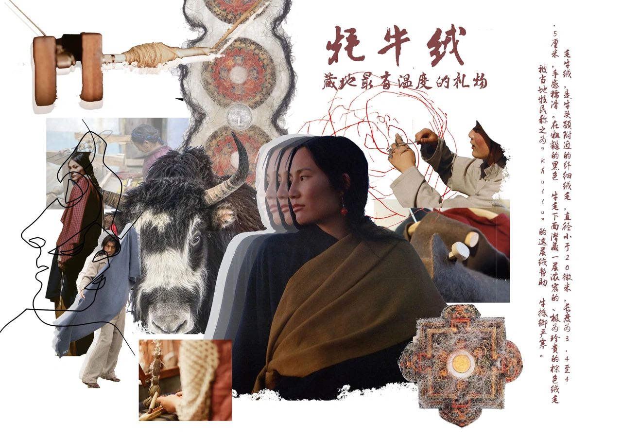 被称作是藏地最有温度的礼物。牦牛绒很细,直径小于20微米,长度3.4~4.5厘米,有不规则弯曲,光泽柔和,弹性强,手感滑糯。随着加工工艺和技术的提高,牦牛绒必然成为继羊绒后又一种高档纺织原料。可以参考藏族高级织物品牌Norlha,整个版型设计超级高级