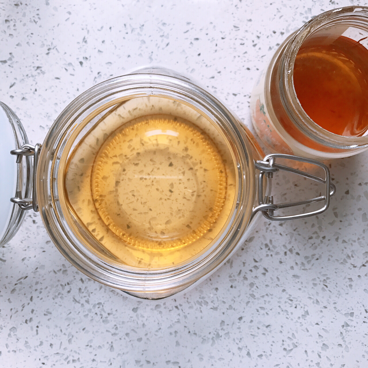 5. 最后在瓶口加封一层厚厚的蜂蜜,盖上盖子放冰箱保存3天,3天后拿出摇一摇就可以喝啦