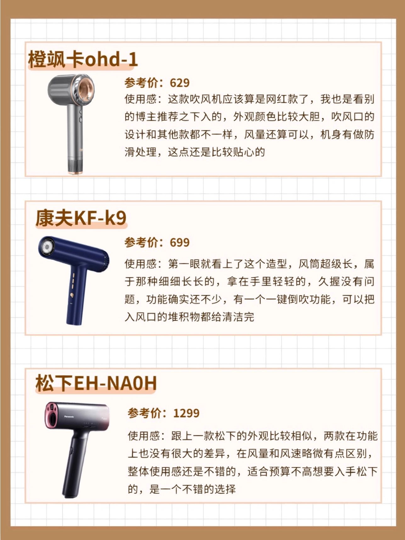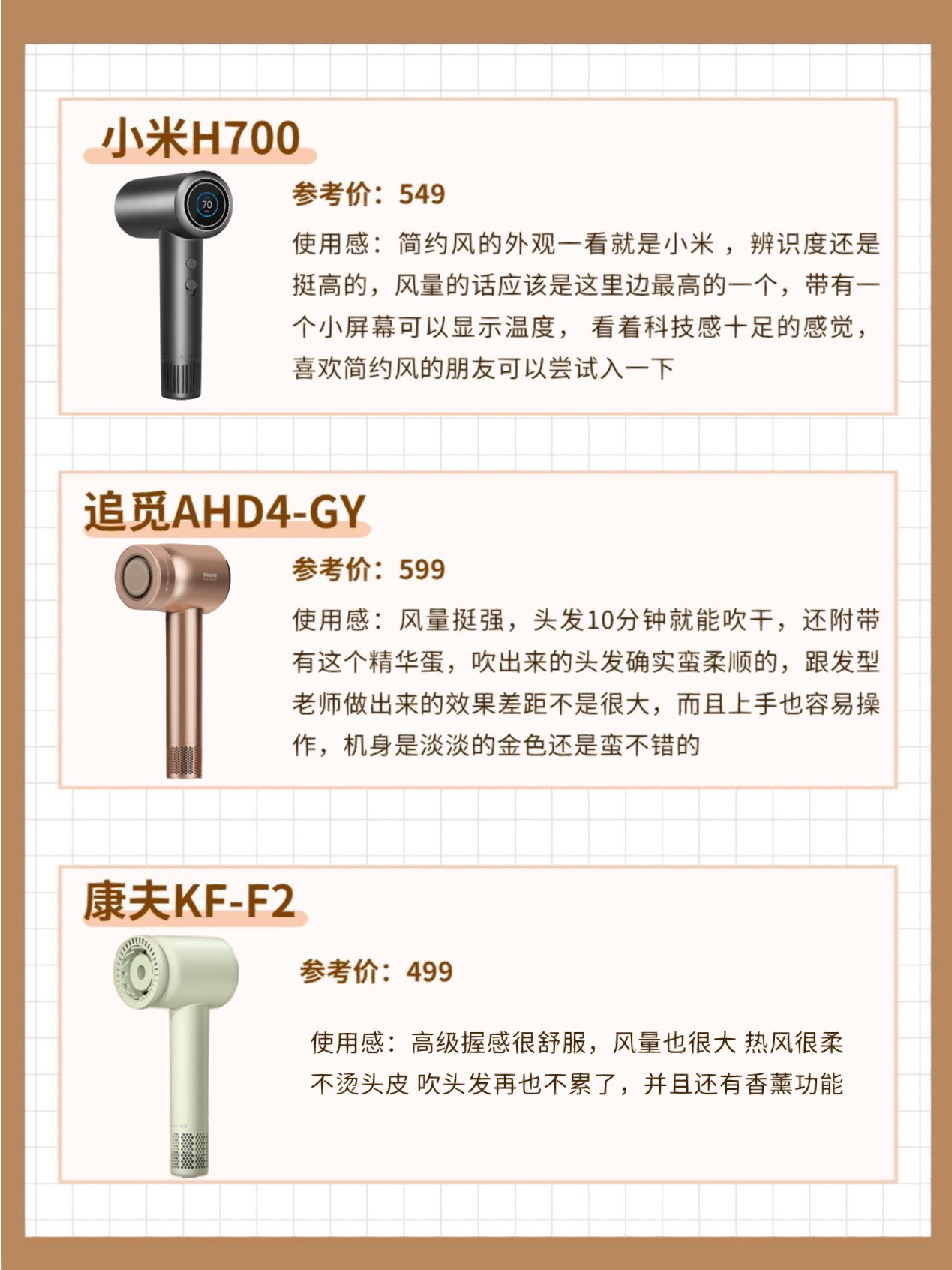 风速:高风速可以让发型蓬松,不容易扁塌,高速吹风机马达转速一般大于3w转/分钟