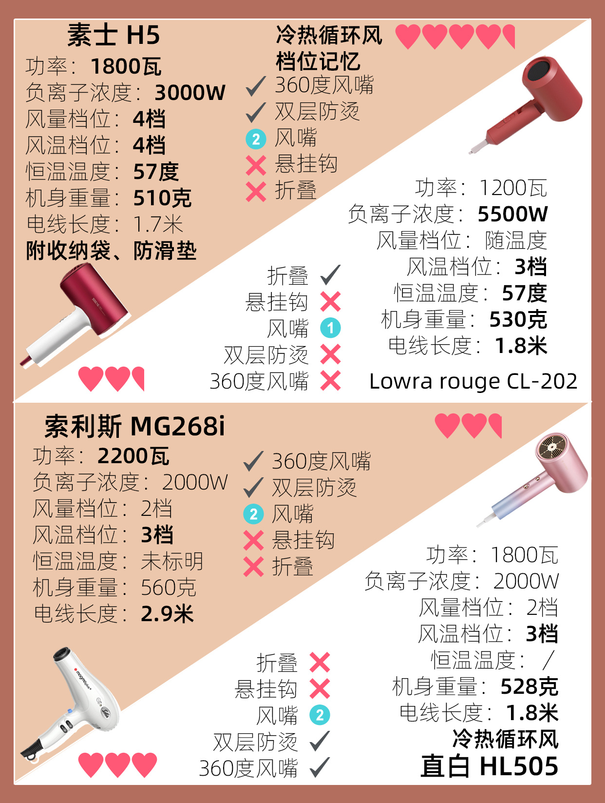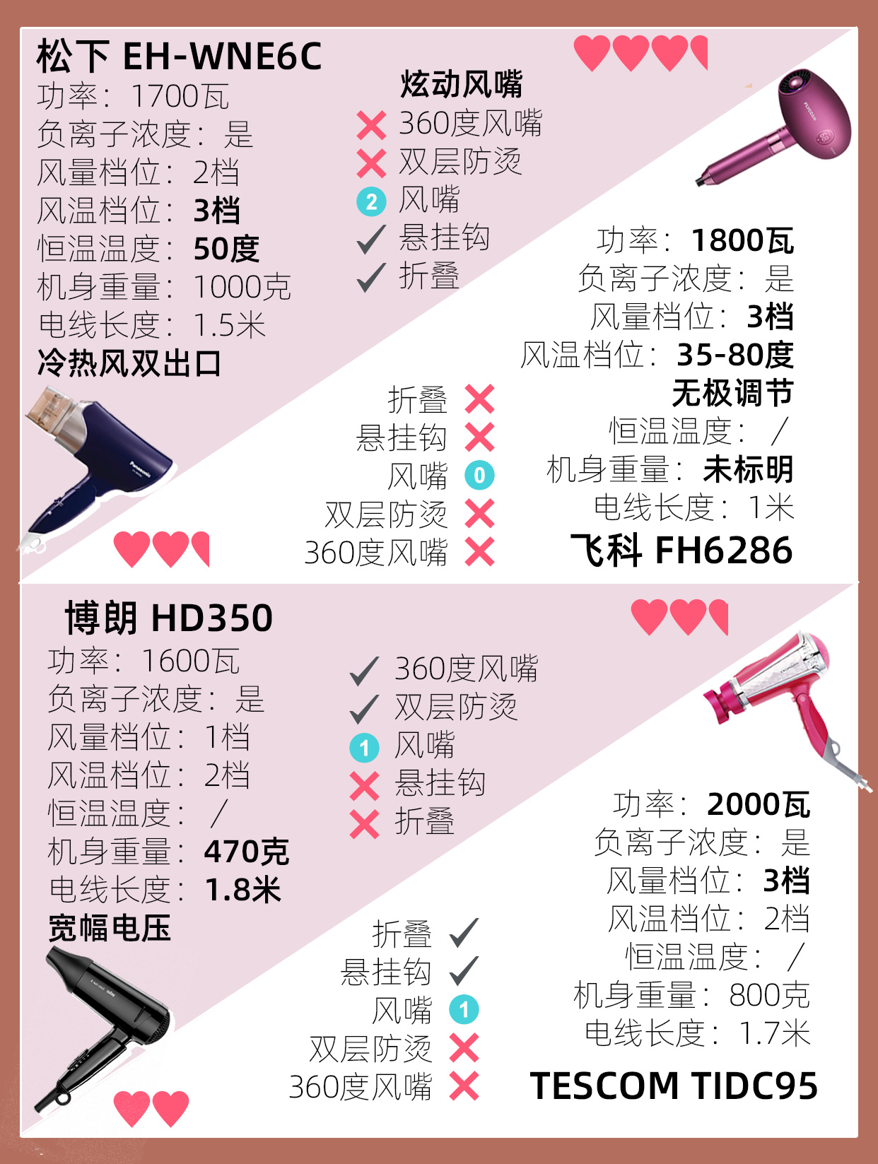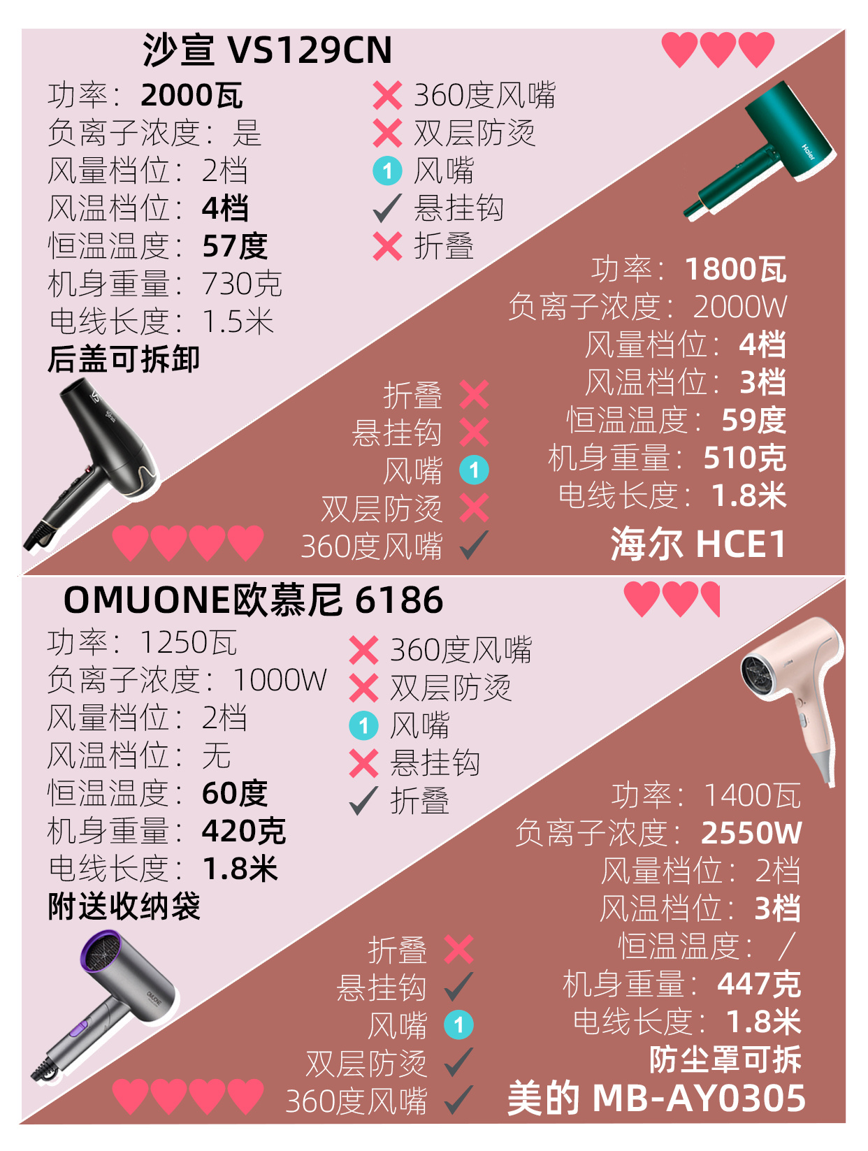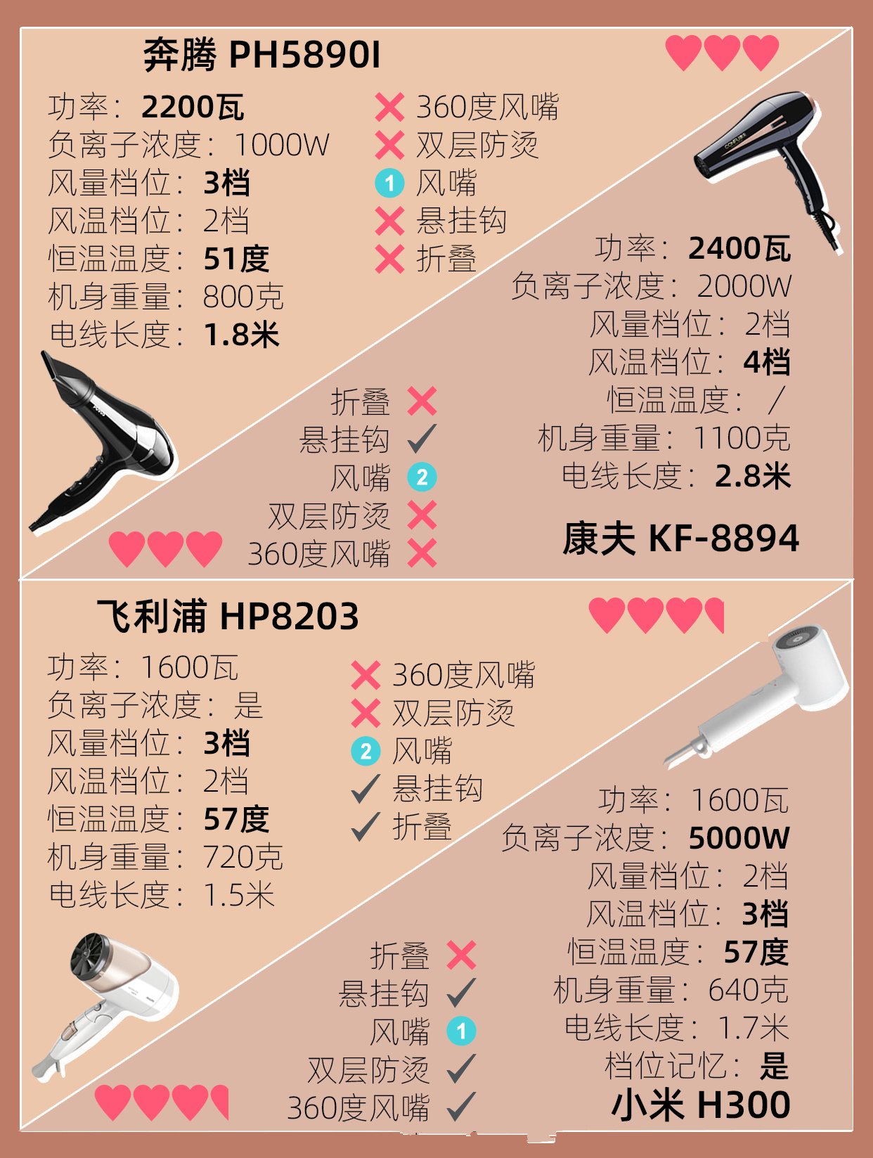 根据这些特点盘点了市面上16款热卖的负离子吹风机: