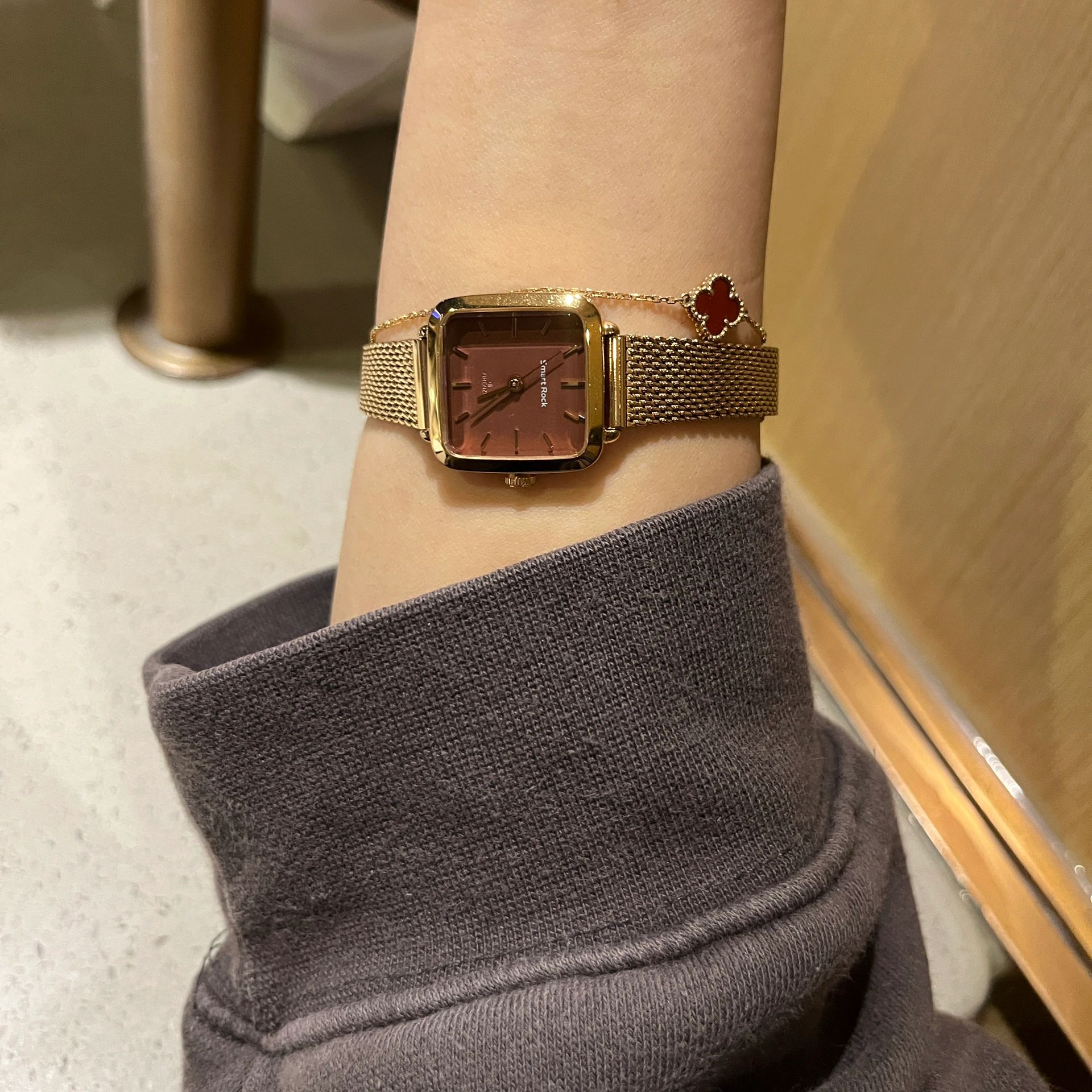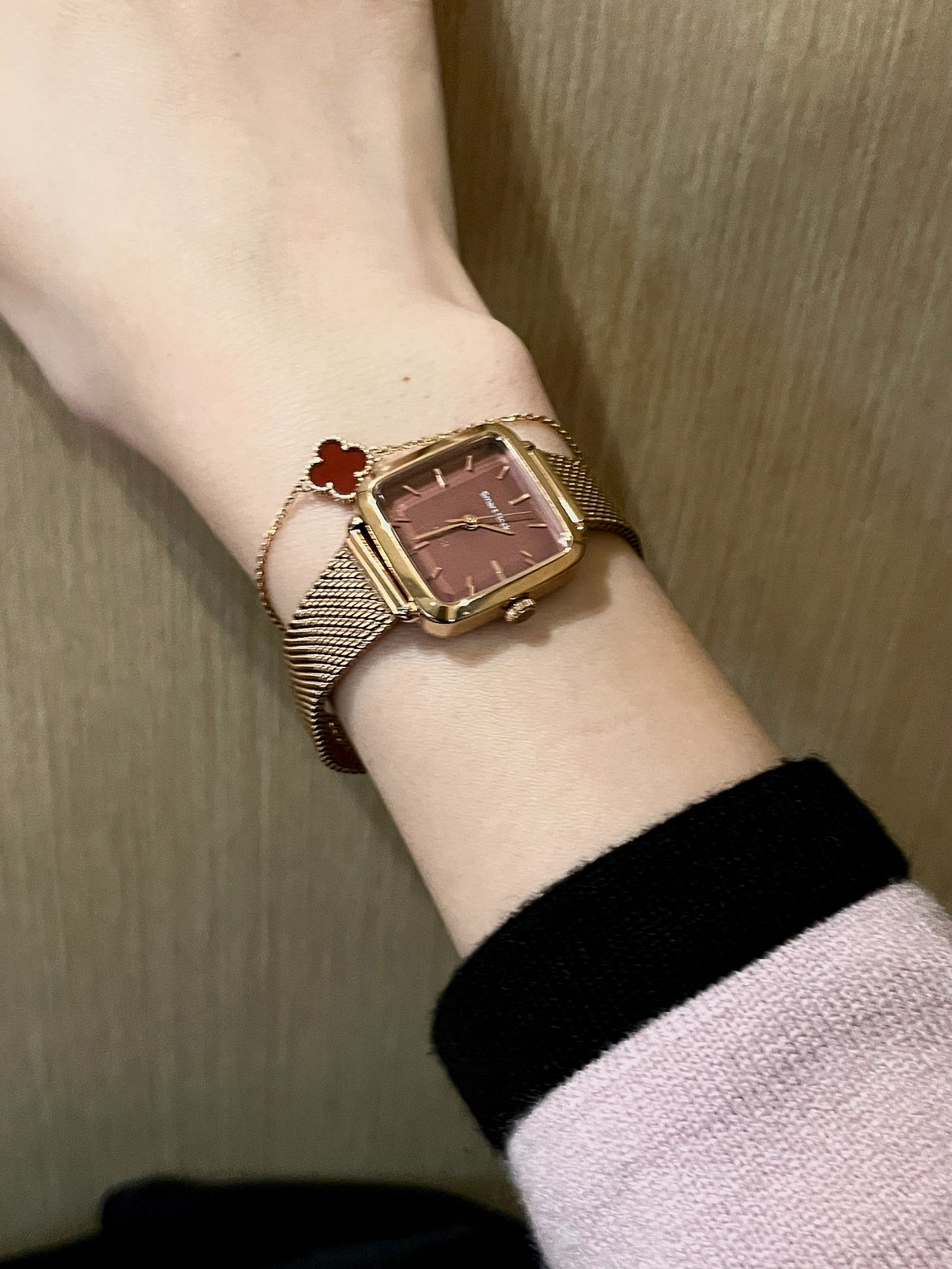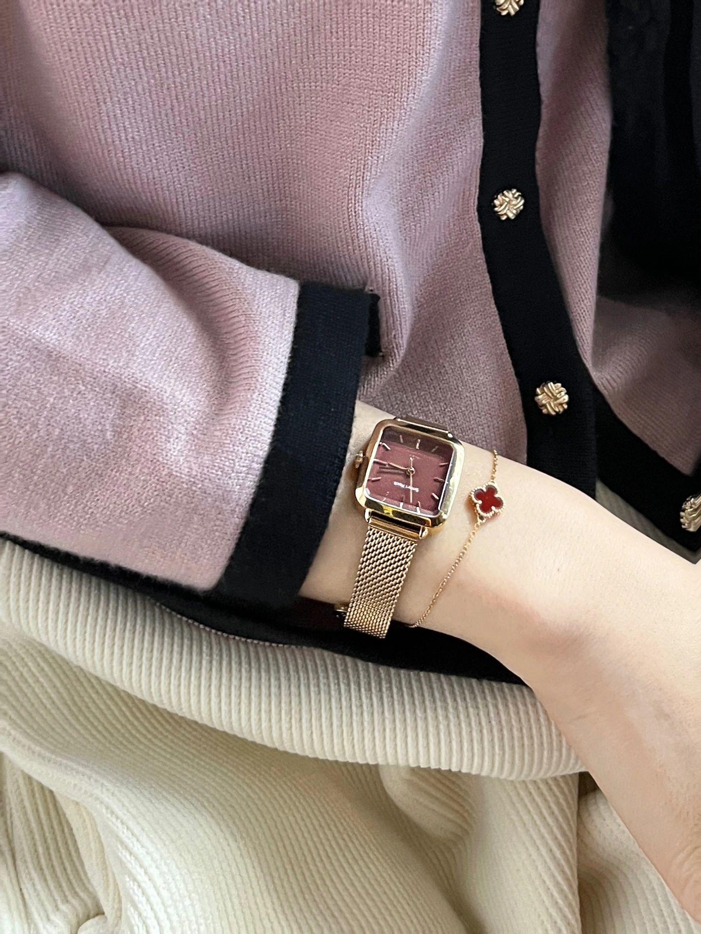 玫瑰金金属表带的小金表好显气质,酒心小方糖的表盘超级显白,满满的轻奢风!