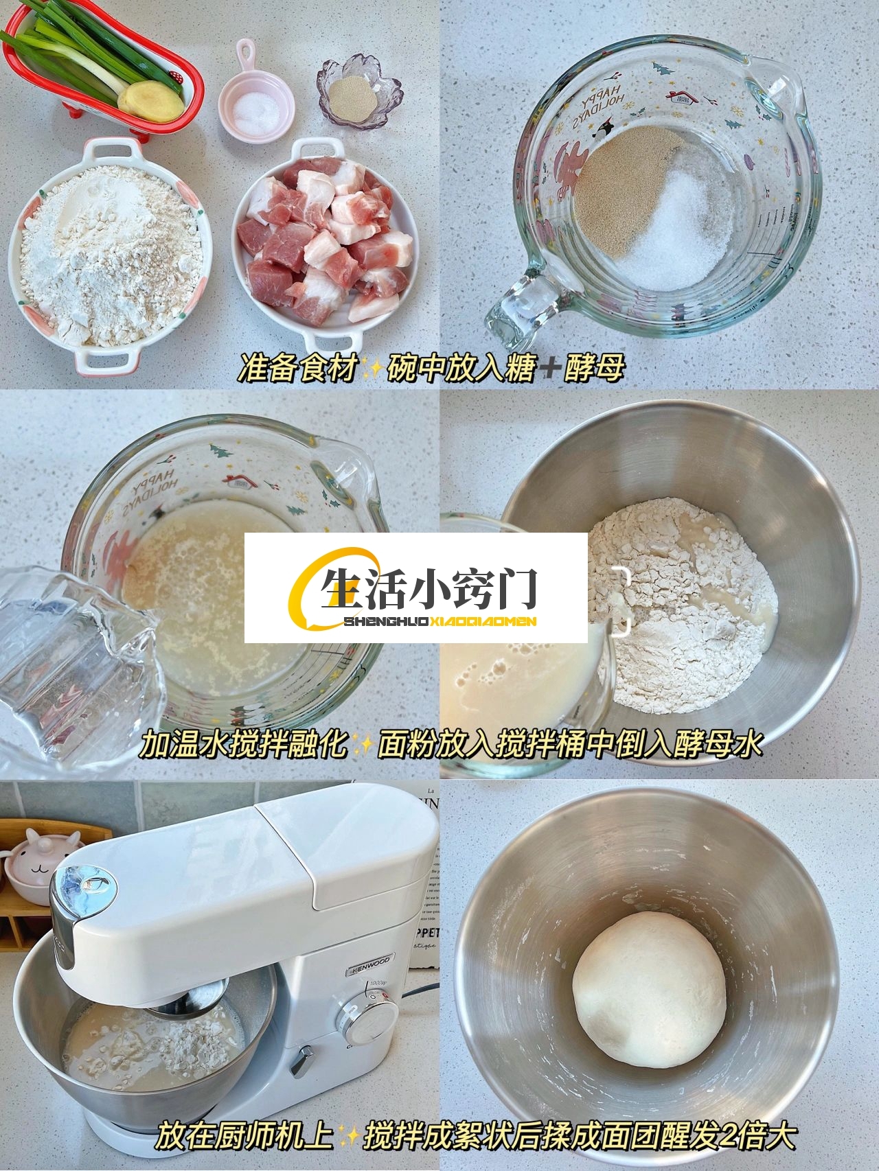 面粉500克,酵母5克,白糖5克,温水260克,猪肉500克,大葱1根,姜少许。