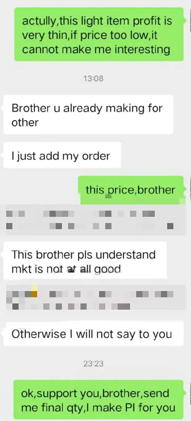 今天下午刚收到50000美元的货款,汇率马上就大涨。我们这行就是美元涨,材料跌,美元大涨,材料也就大跌,像现在这种情况,我们这行的利润是受到美元上涨和材料下跌双方面的加成。刚好上星期VIP客户刚下了两个柜子的订单,还没安排下去,这两天原材料又跌了不少,心里美滋滋,订单打算再捏他几天看看。[呲牙][呲牙][呲牙] 不过最佩服的还是我合作工厂的老板在去年年初3月份接的一张几千万的年订单,一直捏在手上,只下了客户急要的计划,等7月份材料大跌的时候才安排下去买原材料,在原材料这一块利润多了几百万。加上从前年年底到去年年初大概有大几百万美金没有结汇,供应商的钱一直压着不付,后来7-8月份汇率涨上去了才结汇付给供应商。光汇率和原材料额外的利润就让他赚了接近1000万,真是我和他聊天说到他的这个骚操作,他都是笑得合不拢嘴。 所以有钱人用钱生钱太容易了,像我们这种没钱的小老百姓,碰到这样的机遇,就只能赚点额外的小钱,不过也是蛮开心的,就相当于免费送我一次出国参展的机会[大笑] 趁着材料下跌的机会,今天又接几张老客户的订单,然后另外一个客户手里的订单本来在竞争对手那里做的,下午和他谈了好一会,我的价格和他的目标价还有点差距。不过现在材料下跌,我也刚好趁机把订单一并搞过来。然后再继续坐等材料下跌[呲牙][呲牙][呲牙] 今年立秋吗大家都在晒秋天的第一杯奶茶,趁着高兴,那我也来晒一下老婆亲自做的秋天的第一杯奶茶!