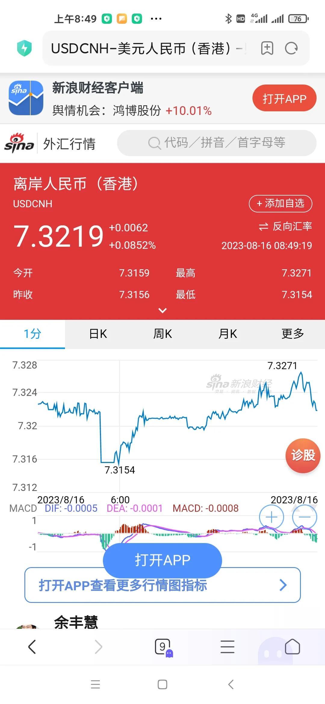 这汇率简直要起飞了!我以为我结汇的时候汇率已经很好了,结果没想到我结汇的时候汇率还在半山腰。8月初结汇了30多万美金,现在我在拍大腿了,不过有个5万美金上个星期到账的,昨天才看到,这才让我心里平衡了那么一丢丢。 那么汇率接下来会怎么走,现在所有人都说要到7.5,甚至8,我觉得这是一个危险的信号,大家都在做空人民币。虽然现在中国出口差得一匹,但是资本的镰刀只要等韭菜长好了,就会过来收割,我想镰刀很快就要来了,因为他们只在乎韭菜,才不会看中国经济好或不好的。