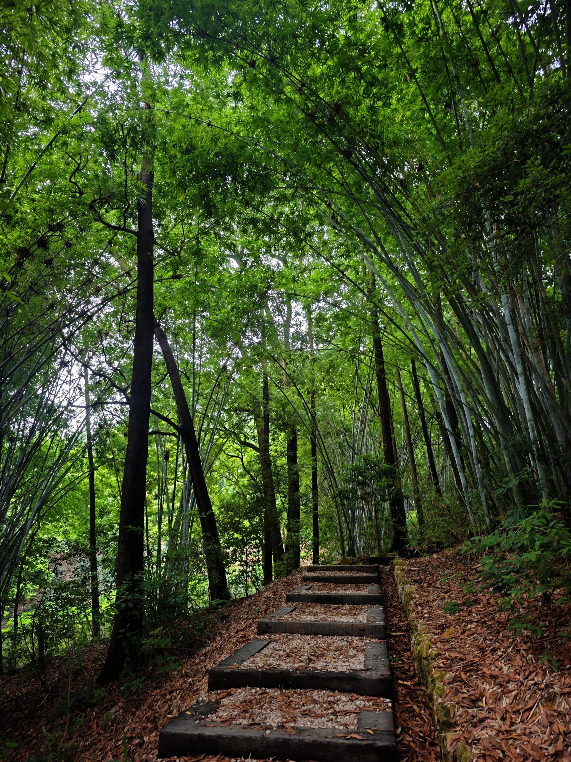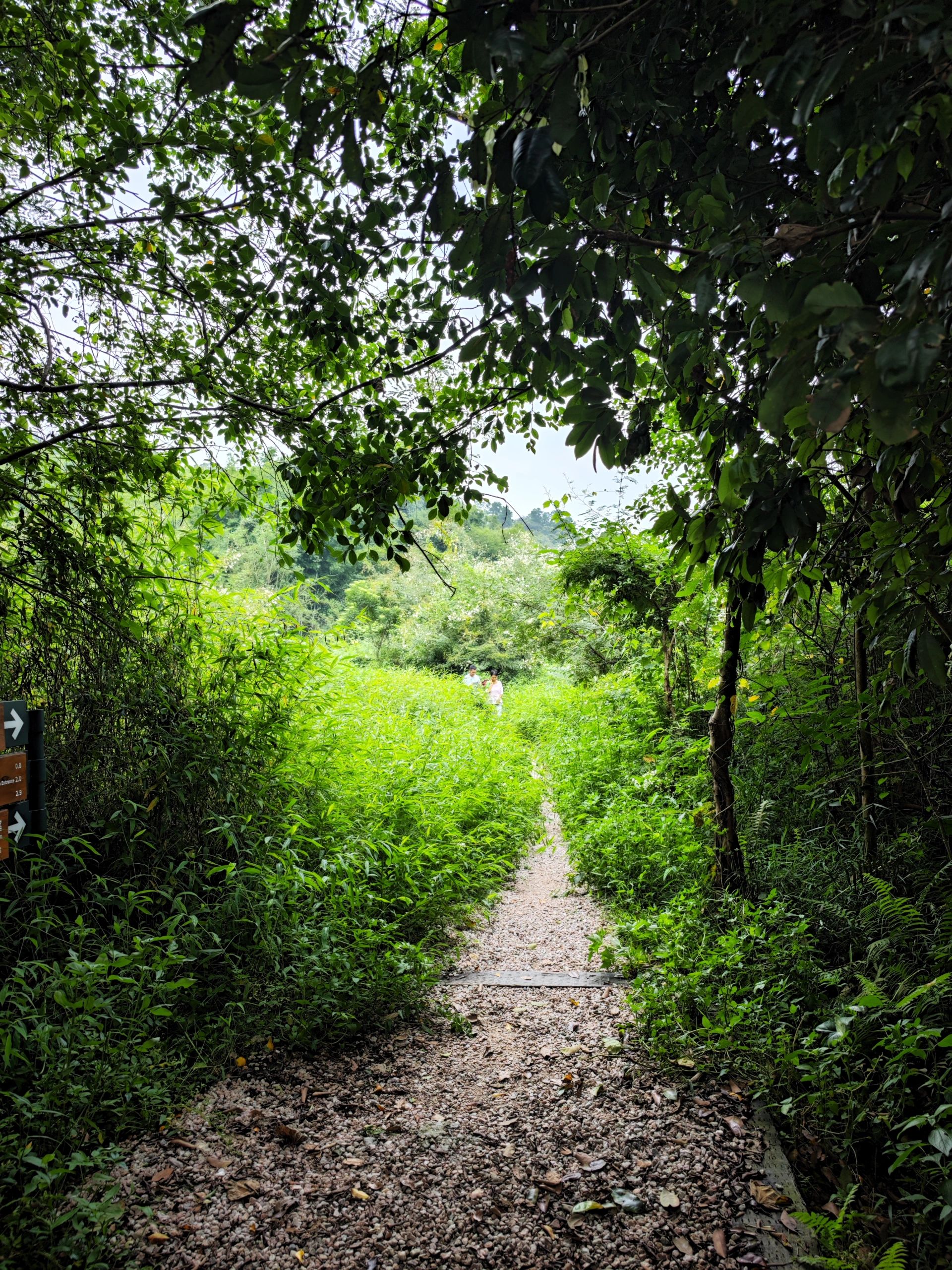 这条线路是一条环线,从起点出发绕一个圈回到终点,大部分路段是竹荫路,全程大概5公里左右,运动量刚刚好,照着路边和石子路走就可以。