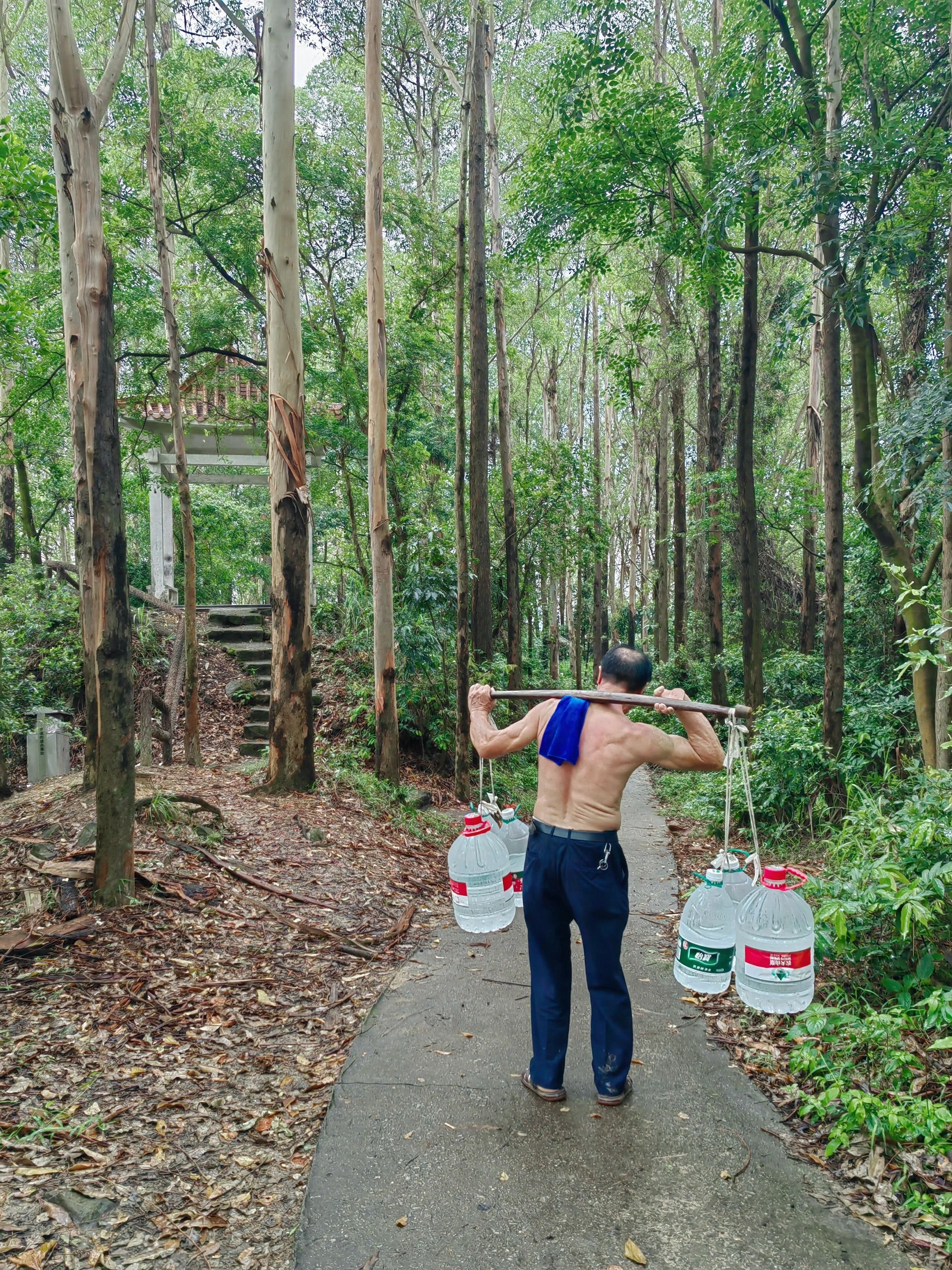 树下布满热带雨林一样的植物,山顶有泉眼,路上碰见不少登山者专门带上水桶来接天然泉水~