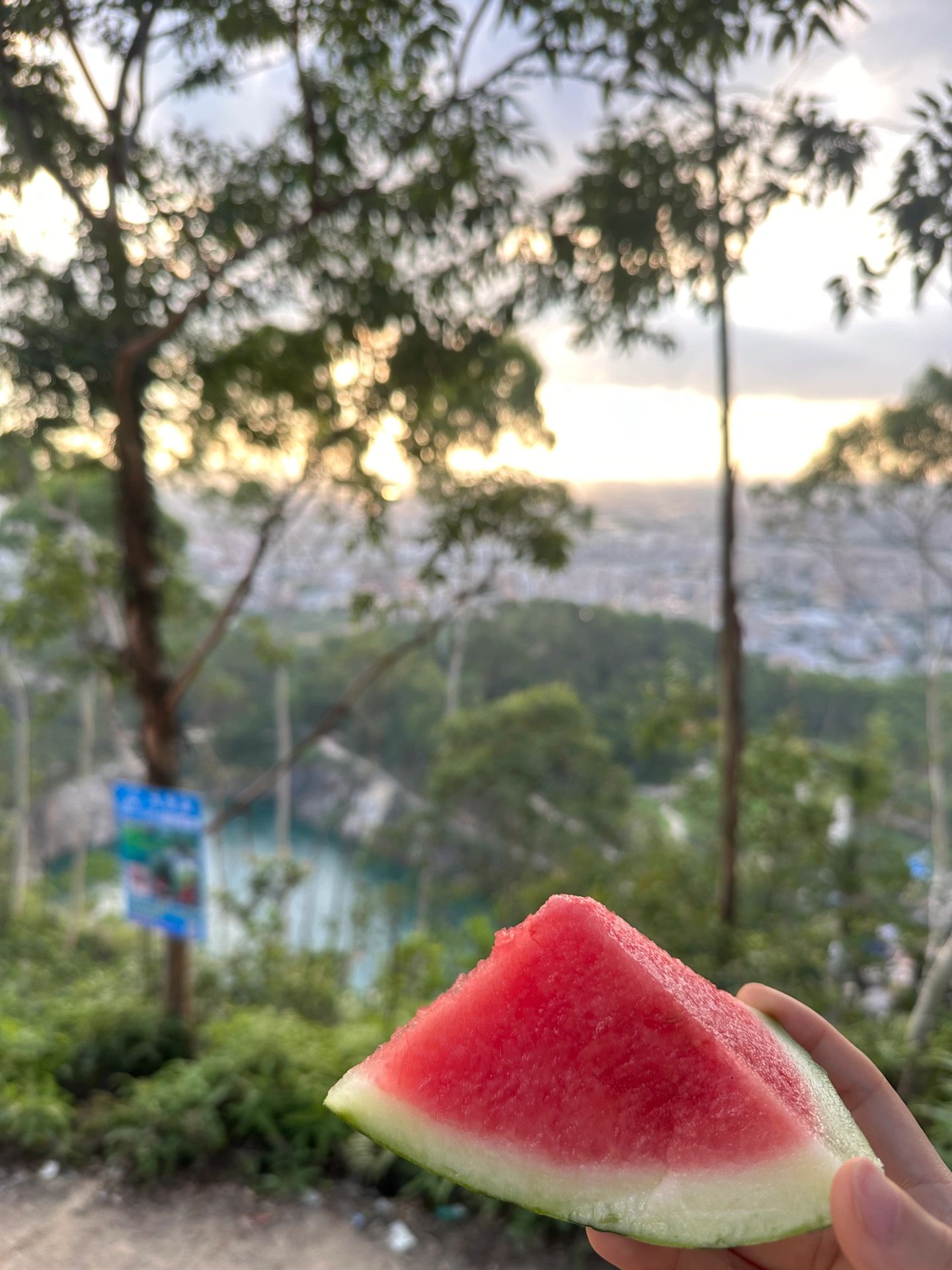 3.下山后的晚霞(约10min)可开闪光灯/补光灯 拍日落氛围照。