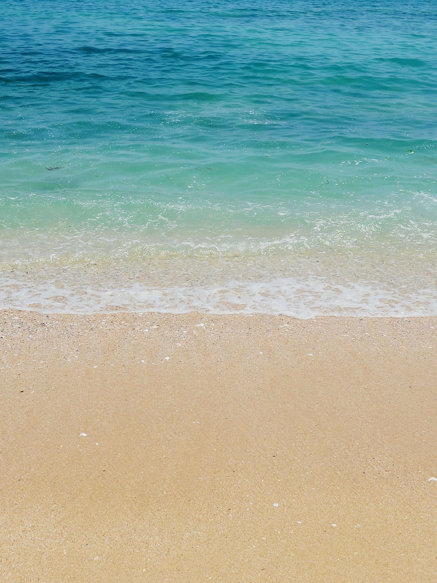 徒步线路的第二个沙滩,可谓是整条线路中的精华段,沙滩细腻洁白,海水清澈透明,特别是连绵不断的层层鱼尾纹长浪
