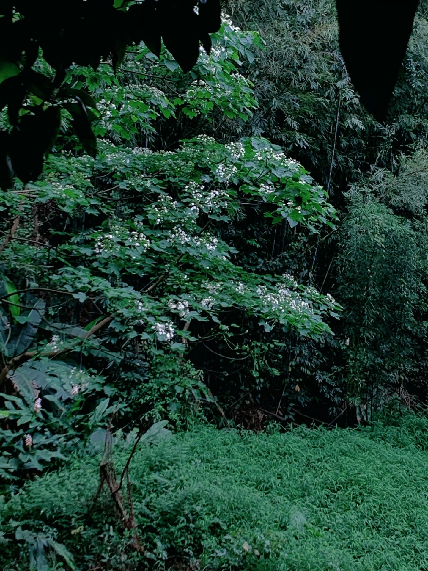 15公里的路途中,弯弯曲曲形状独特的螺旋蕨菜、盛开的星星点点的小花、叫不上名字的红色的绿色小果子、飘摇着飞絮的树木等等