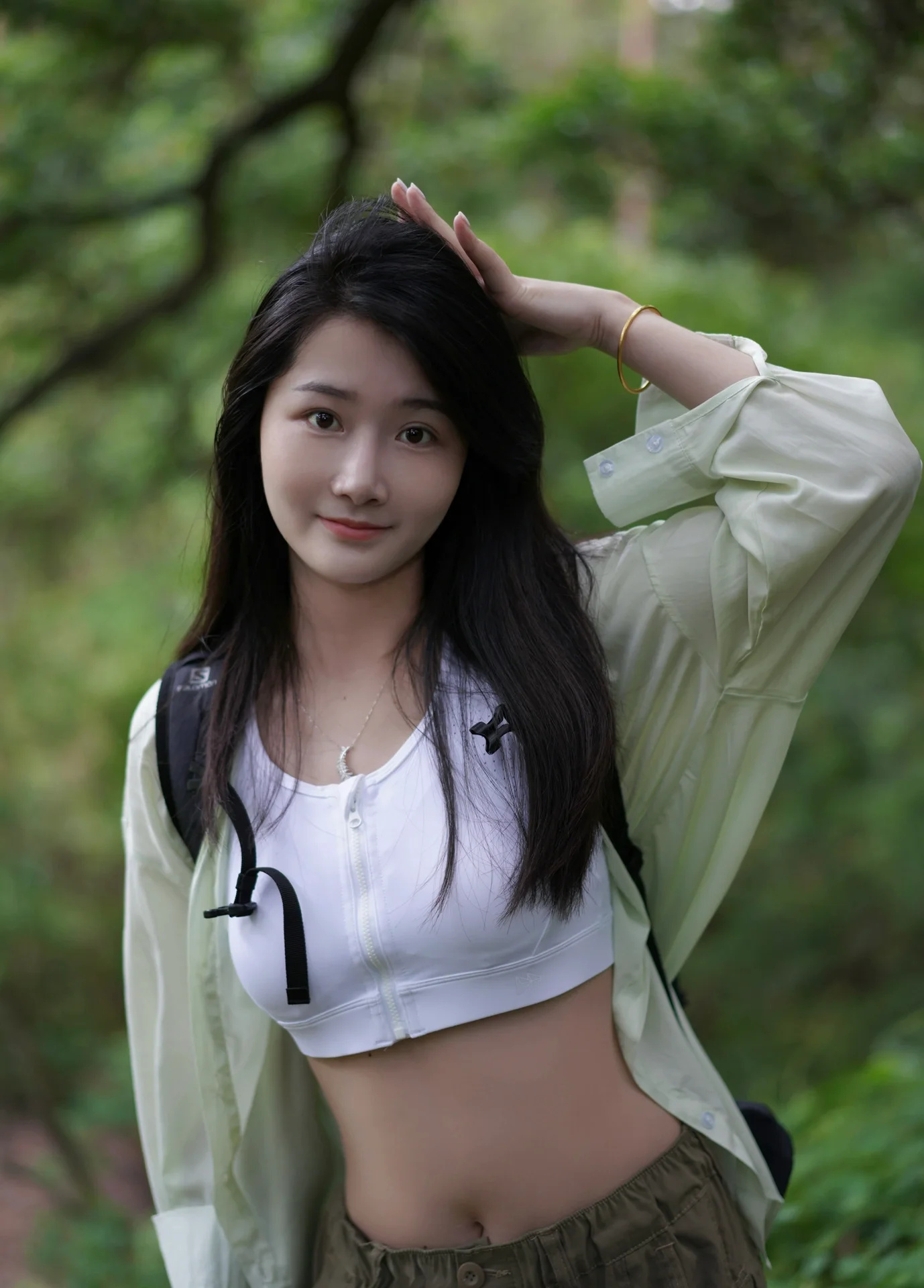 穿搭: 轻薄透气的运动内衣➕外搭一件防晒衣,防晒同时运动大爆汗也毫无压力~