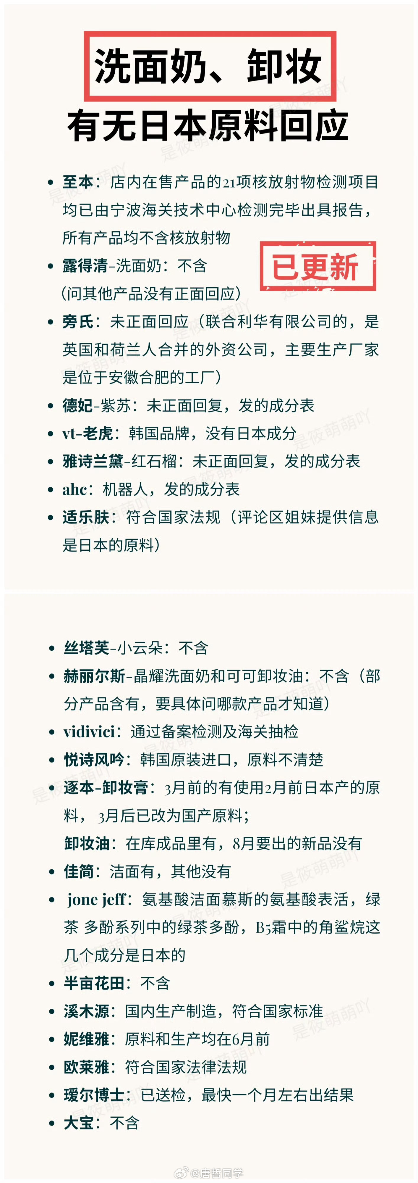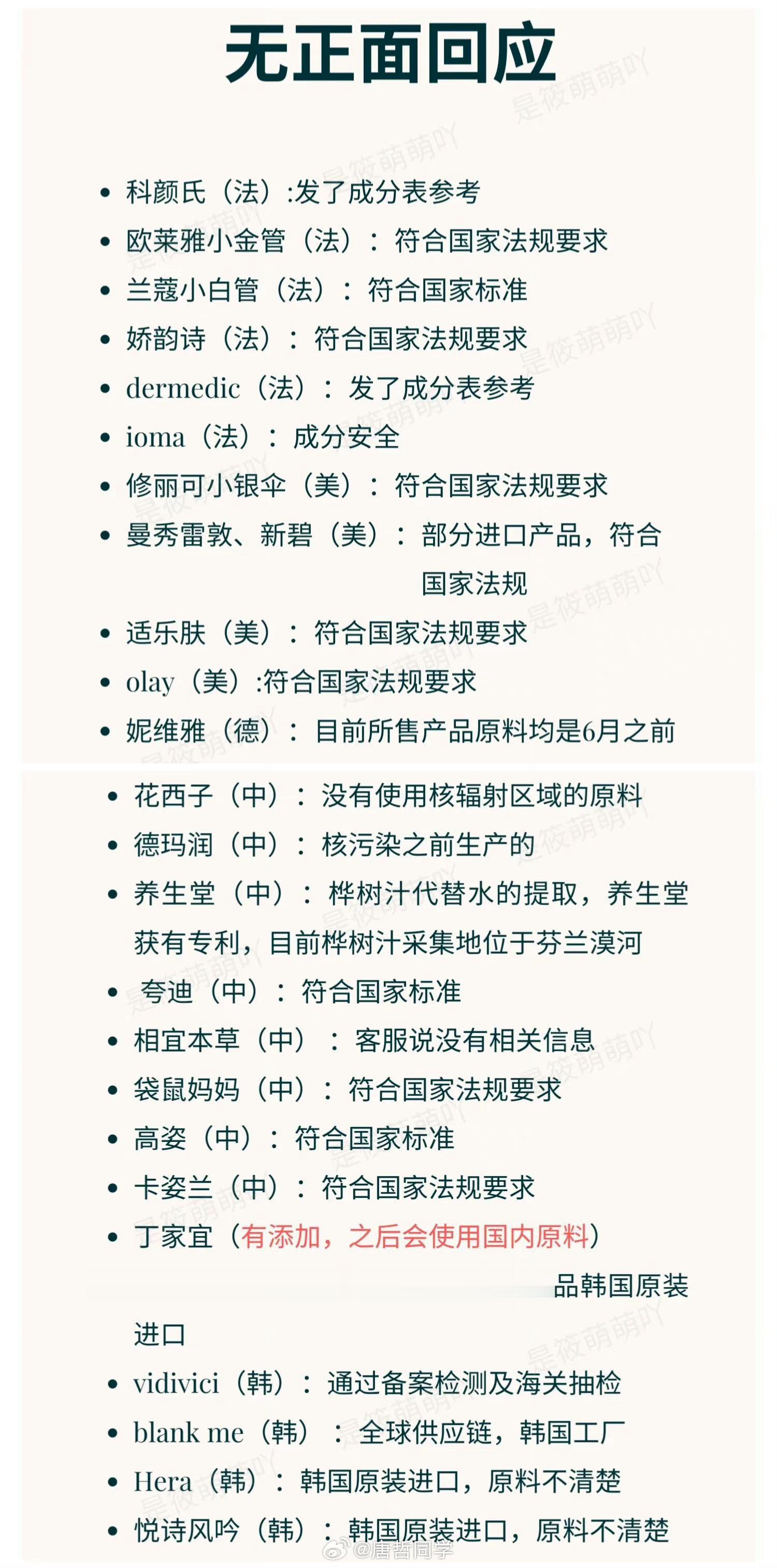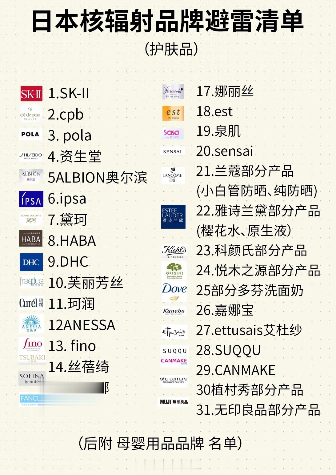 姐妹们!害怕化妆品踩雷的看过来。日本有核辐射隐患的化妆产品避雷合集(目前最全的版本,特别感谢网友“是筱萌萌吖”)