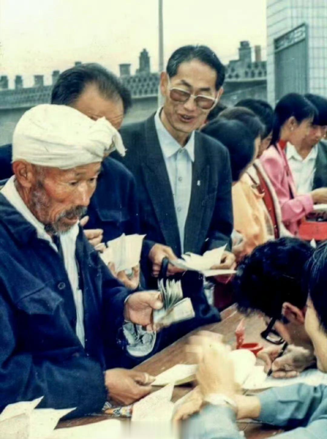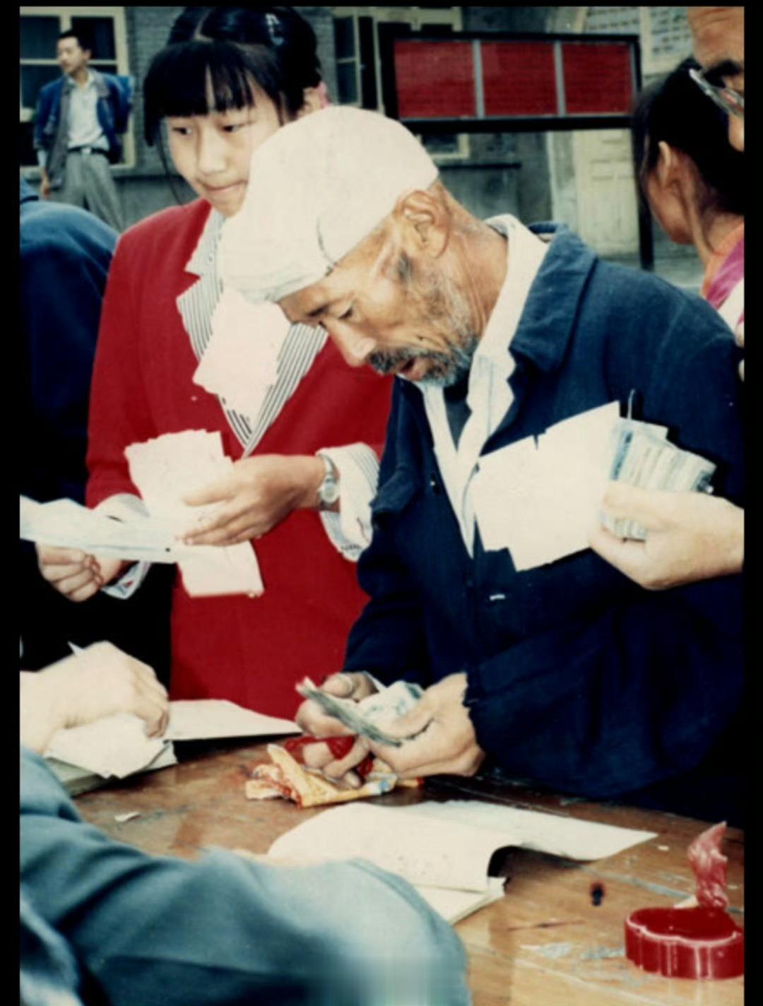 1995年,陕北。老农送女儿上中专,穷苦人家的孩子过早体会生活的艰辛,父亲脸上每道皱褶都是生活刻下的年轮。感恩这位父亲,在那艰苦的年代依然送闺女上中专。也许孩子多读几年书,她的命运就与众不同。那会儿中专包分配,现在应享了福。