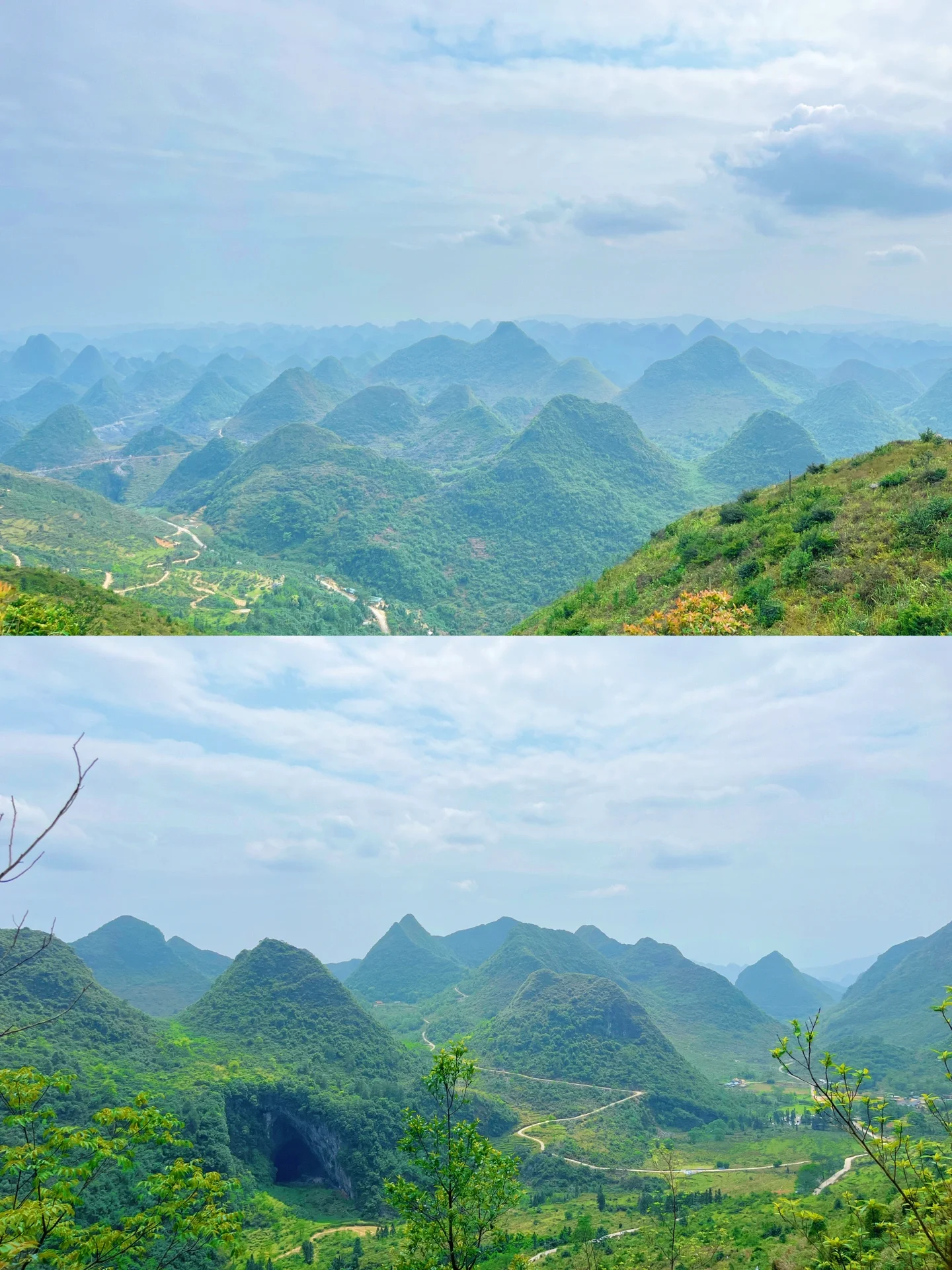 站在莫六公山顶上,可远眺有着“天南第一峰林”之美誉的英西峰林。