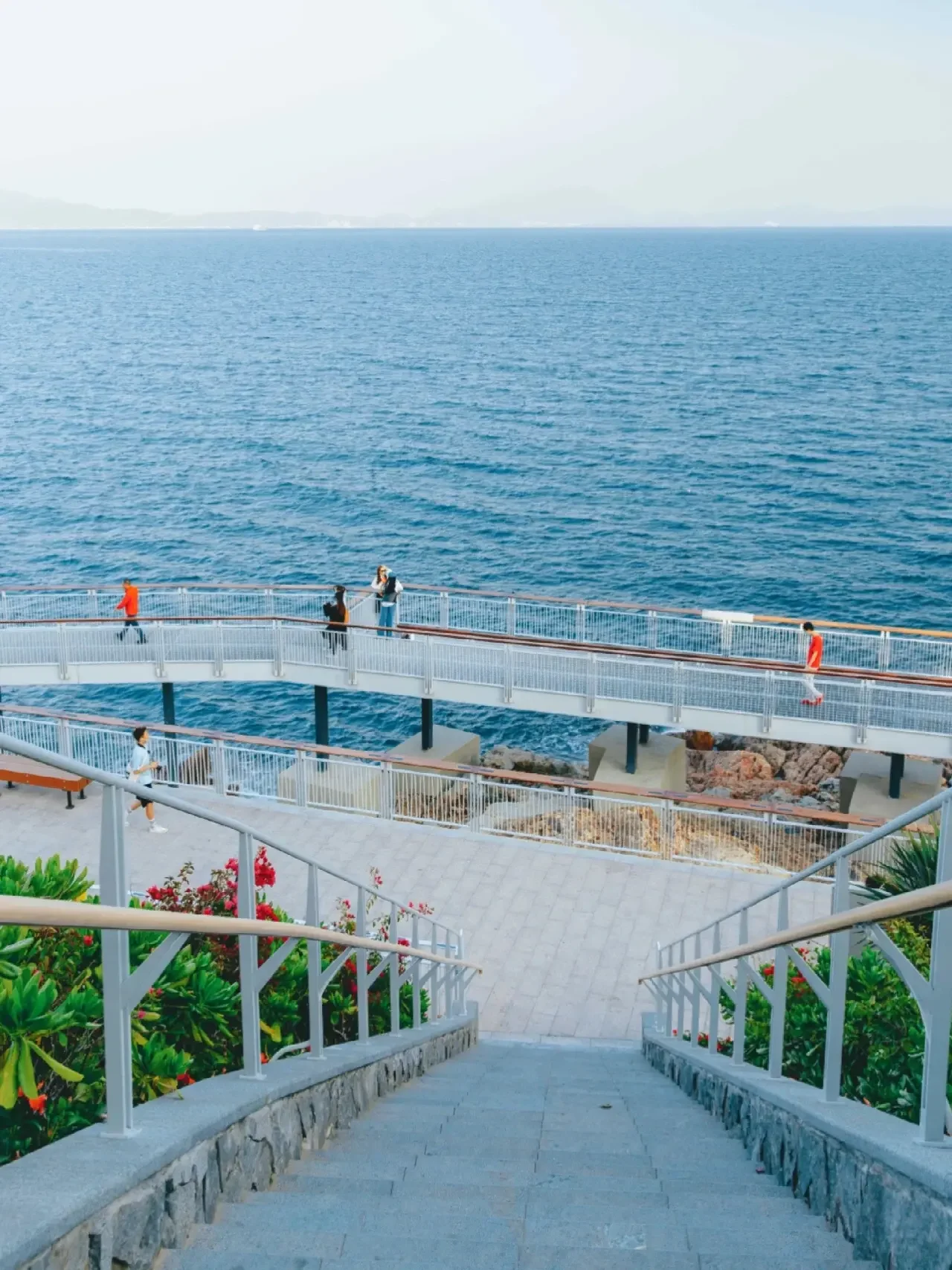 沿途步道、景观平台、大栈桥、石拱桥、大梅沙沙滩